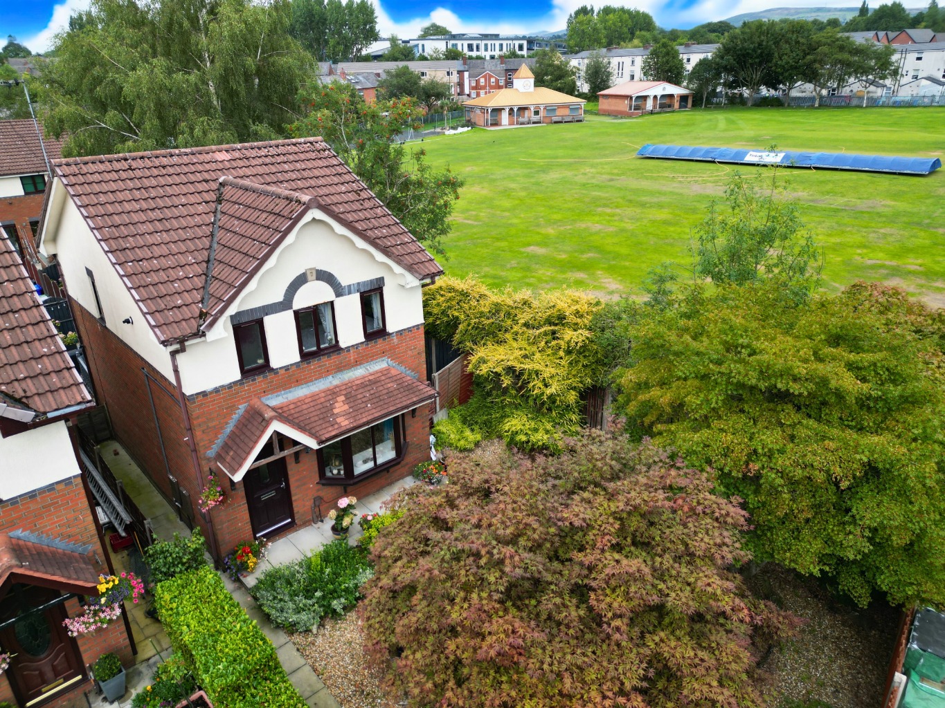 HOWZAT!! – Ever dreamt of watching a cricket match from the comfort of your own bedroom? Well, now you can! Welcome to Flowery Field Green, where this rare gem of a three bedroom detached home offers an unrivalled location right next to the cricket club. Imagine stepping outside, joining the locals