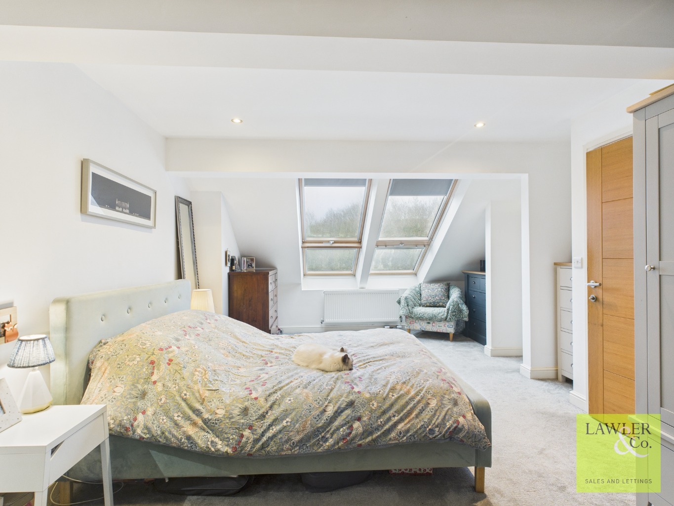 The master bedroom is located on the second floor and offers an impressive and spacious double bedroom, enhanced by two Velux windows that flood the room with natural light. The room further benefits from a walk-in wardrobe and a stylish en-suite. The partially tiled en-suite is beautifully appointed and features an attractive freestanding bathtub, vanity wash basin, heated towel rail, walk-in shower and WC.
