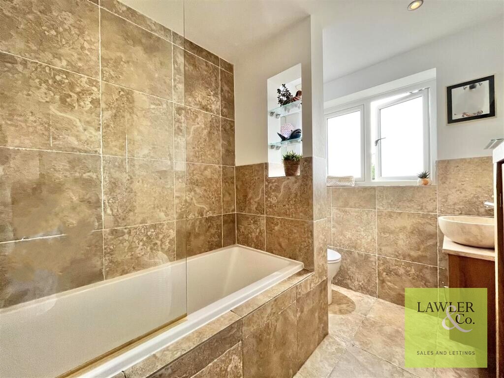 Heading upstairs, the spacious landing provides access to the well-proportioned second double bedroom, which benefits from its own en-suite which comprises of a walk-in shower cubicle, vanity wash basin, heated towel rail, and WC. The third and fourth generous double bedrooms enjoy pleasant views overlooking the rear garden, while the fifth double bedroom is currently utilised as a study, offering excellent flexibility. The partially tiled family bathroom is well appointed and features a bath with shower overhead, heated towel rail, an attractive stone wash basin, and WC.