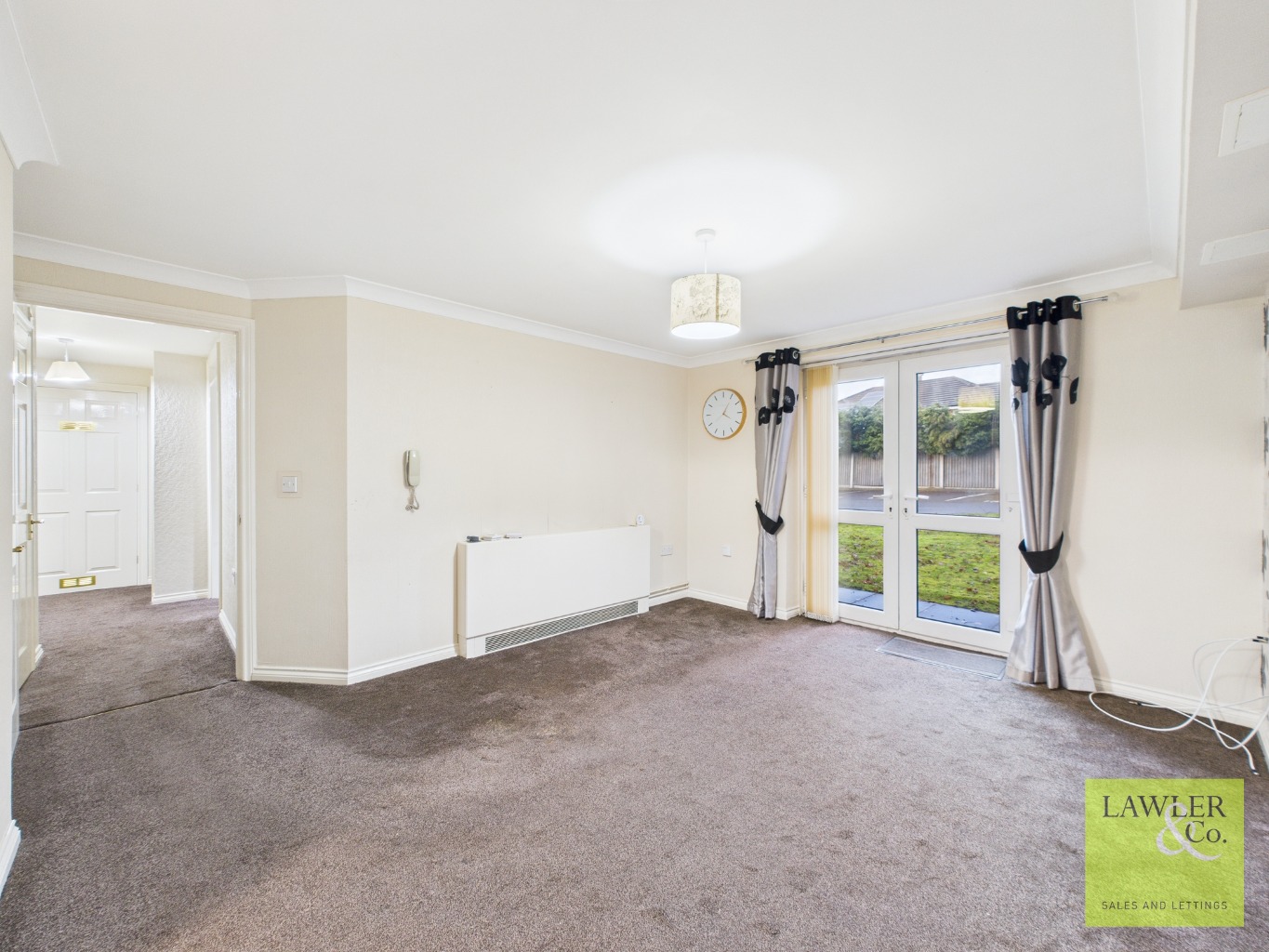 On entering this attractive ground floor apartment, you are welcomed into a bright and spacious entrance hall, complete with a built-in storage cupboard, ideal for keeping coats, shoes, and everyday items neatly organised. The well-planned layout provides easy access to all rooms, creating a practical and comfortable home that is perfectly suited to a relaxed retirement lifestyle.