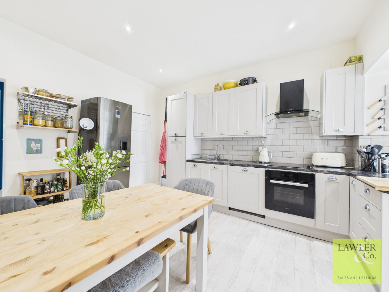 Outside, the rear garden features a patio area suitable for outdoor seating, as well as a lawn – perfect for enjoying the warmer months. To the front, there is on-street parking.