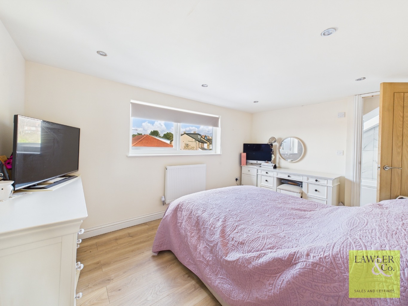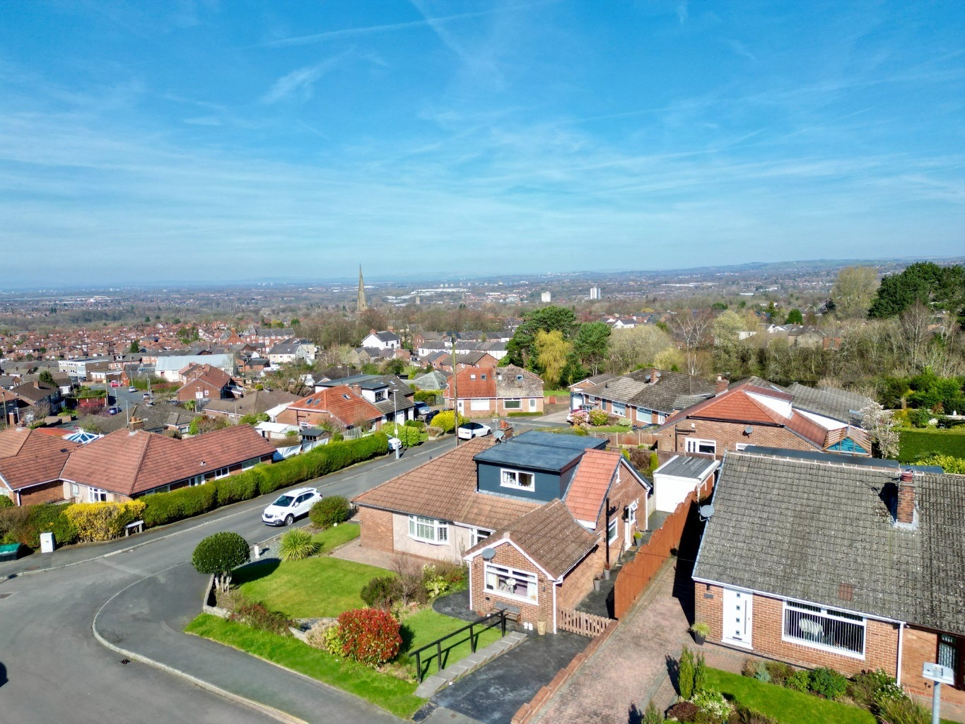 Upstairs, you will find two further well-proportioned bedrooms which share a “Jack and Jill” bathroom. These were created through the thoughtful addition of a dormer extension by the current vendor, significantly enhancing the space and functionality of the home. From this elevated position, the bedrooms enjoy far-reaching views across the Manchester skyline, bringing in an abundance of natural light and a real sense of openness.