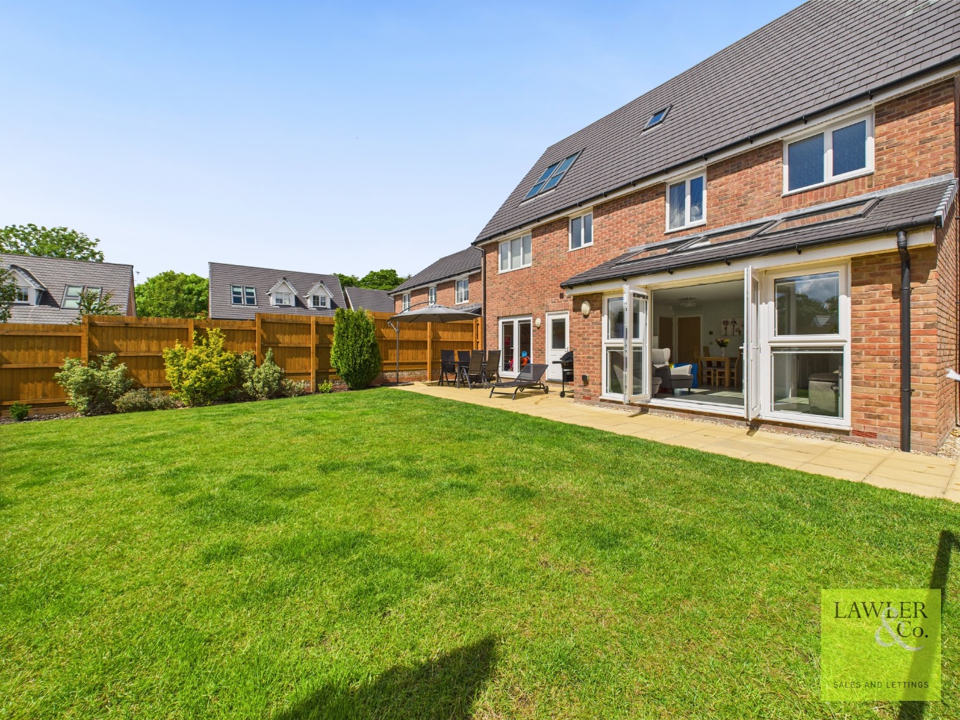 Outside, the property stands on a good sized plot, having a large driveway providing ample parking for three cars which leads to the double garage with remote electric door. At the rear, there is a spacious enclosed Garden offering a good degree of privacy and plenty of space for entertaining with patio area and a sweeping lawn.