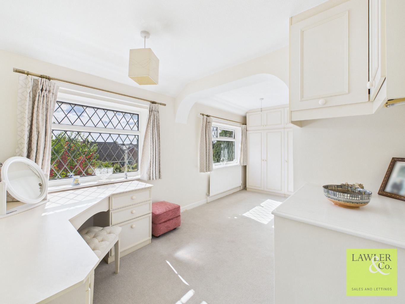 Leading up to the first floor the landing splits off to four generously sized bedrooms. To the left, an ideal space for a home office or nursery. To the right, three spacious double bedrooms all benefit from fitted surround wardrobes and integrated vanity units. One of the bedrooms features dual-aspect windows to the front allowing plenty of natural light with a feature sink.