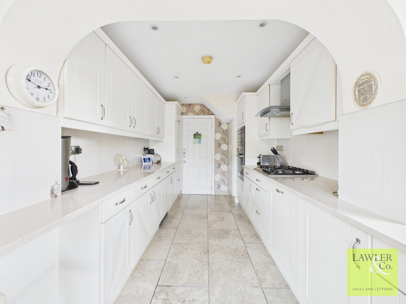 Upon entry through the porch into the welcoming internal hallway is staircase to the first floor and access to the main living areas. The spacious living room boasts a charming front bay window that floods the space with natural light and a cozy electric fireplace setting the tone for comfort throughout. An open archway leads you through to the dining room- ideal for family meals and entertaining guests. From here, sliding doors open into the bright and airy reception room offering peaceful views through the picture window a perfect spot to unwind. This connects seamlessly to the well-appointed kitchen with plenty of eye and base level units for storage along with a range of essential appliances including Bosch oven, microwave, dishwasher, hob with extractor over and a fridge with additional space for a washing machine. A convenient rear door provides direct access to the garden.