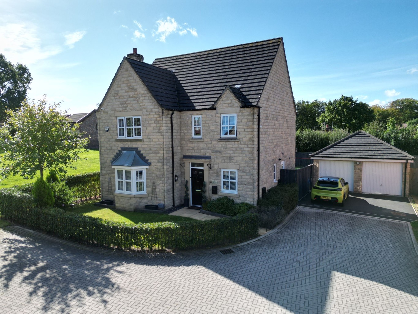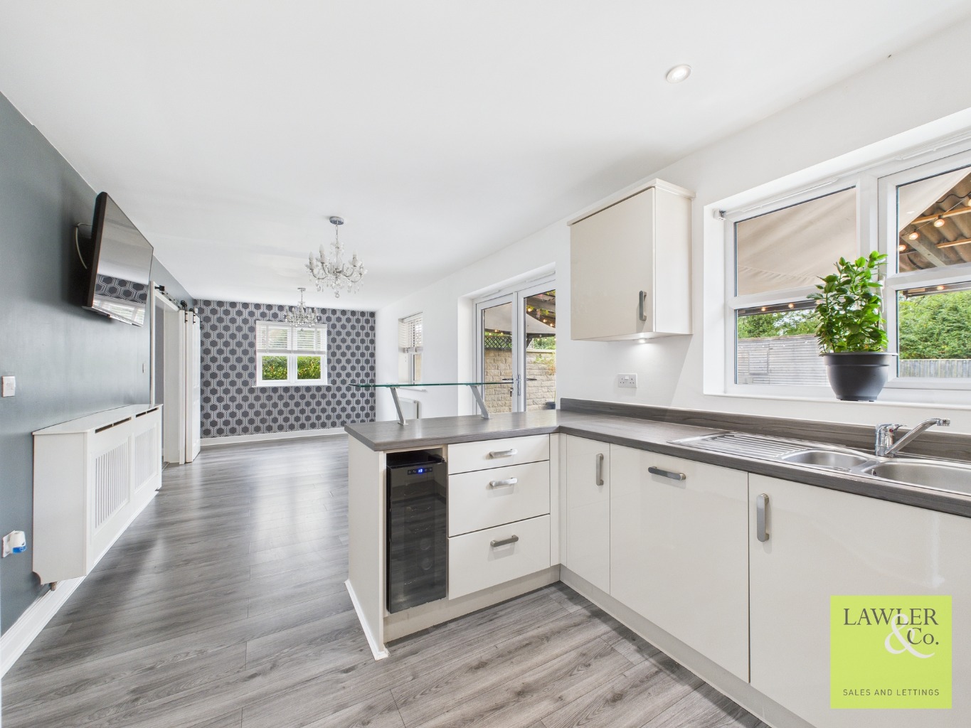 Outside the fabulous garden has a large composite decked area to the rear with attractive covered space that benefits from ambient outside lighting to enhance any social occasion. There is also a bar area to add to the party feel and a low maintenance artificial lawn. There is a detached double garage with access door from the garden which has been split into three rooms, ideal for storage and possibly a gym space.