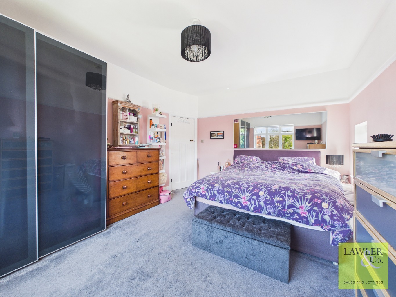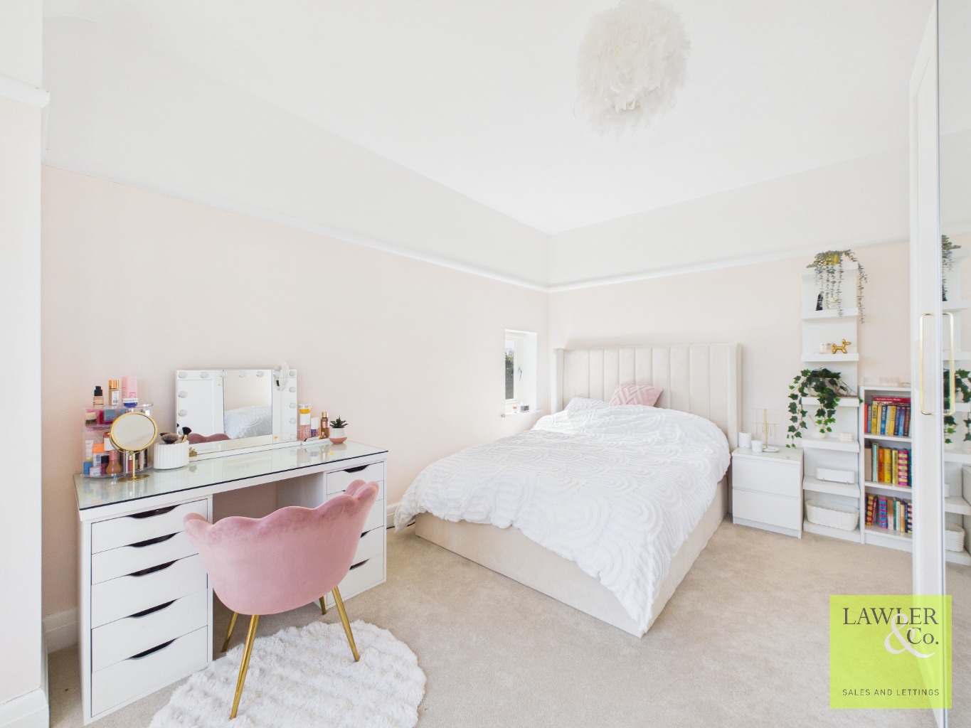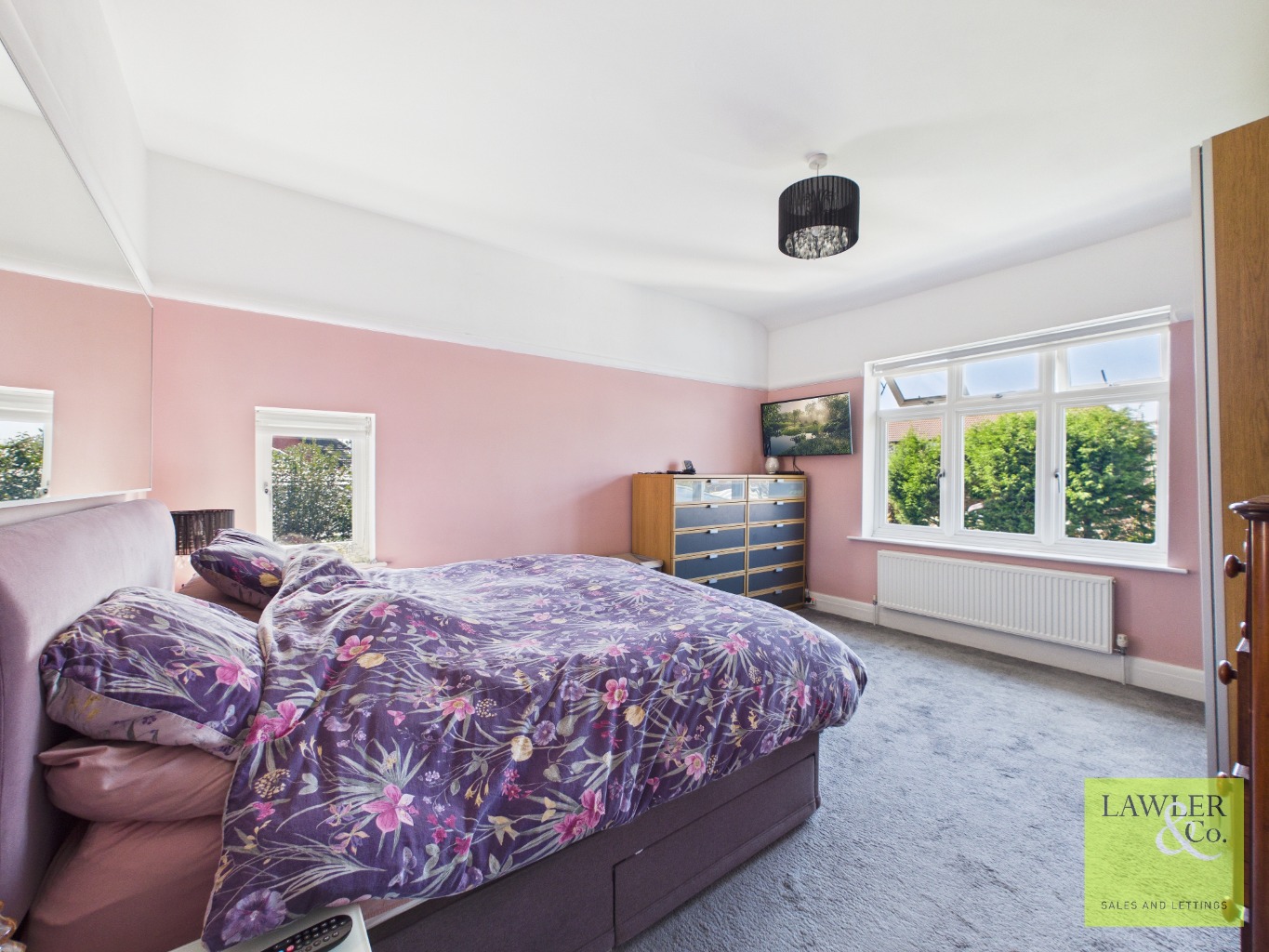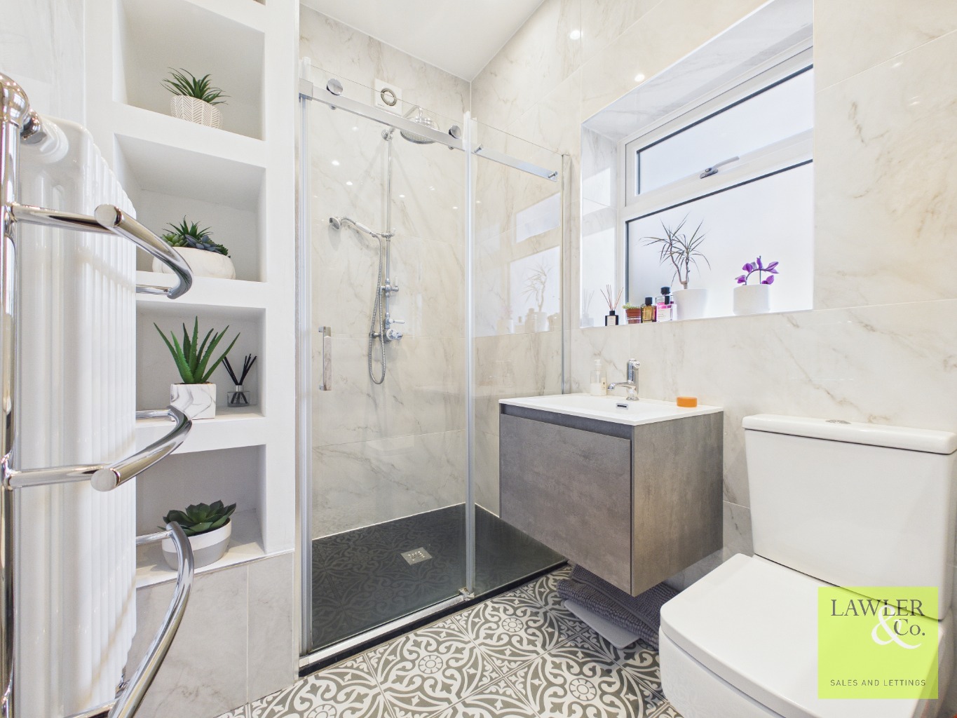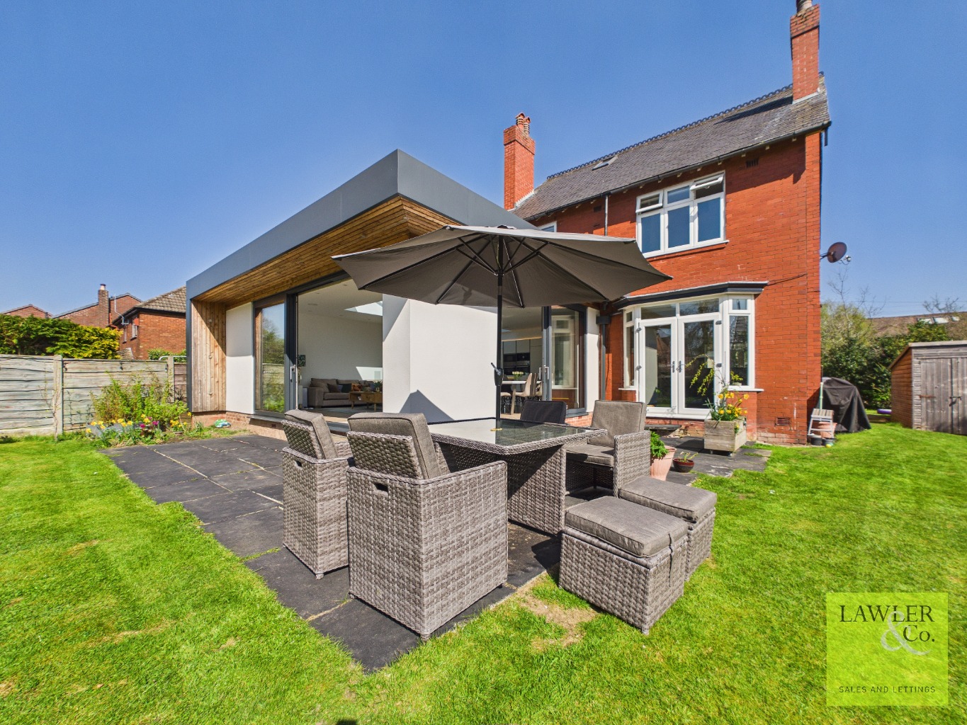Externally, the property truly excels. To the rear is a fantastic south-facing garden enjoying excellent privacy thanks to mature trees. The outdoor space includes a patio seating area ideal for entertaining, a good-sized storage shed and thoughtfully positioned external lighting which beautifully illuminates the property at night. A side gate provides convenient access back to the front driveway, which offers off-road parking for multiple vehicles.