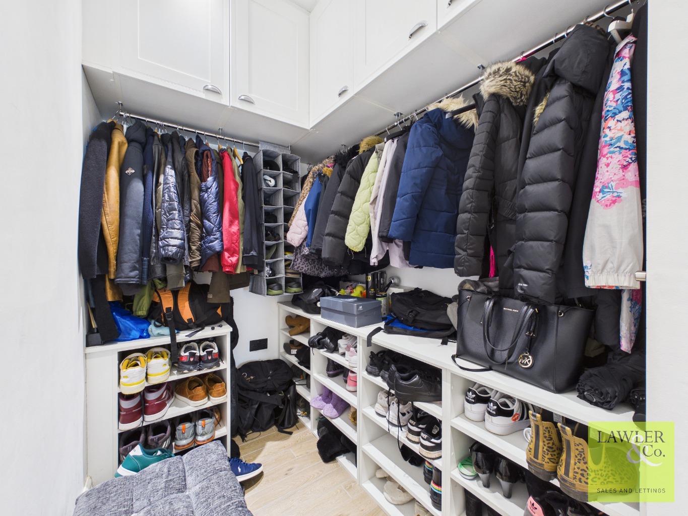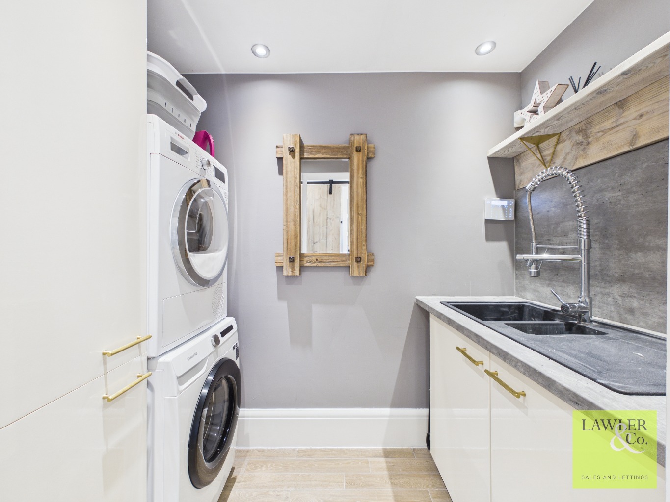 Further enhancing the ground floor is a thoughtfully designed walkway leading to a cloakroom with space for coats, shoes and additional storage, a stylish three-piece shower room comprising walk-in shower, hand wash basin and WC, and a separate utility room with sink, eye and base level units and space for multiple white goods. These areas are accessed via characterful barn doors and also provide external access to the front of the property. Additionally, you are also offered exciting future potential to extend (STPP) to the side, along with a substantial loft and cellar ripe for conversion; the loft is already partially boarded and accessed via a fitted ladder, allowing safe and easy appreciation of the generous space on offer. There is access to a five-chamber cellar offering superb storage and housing the boiler, consumer unit, gas meter and water tank, helping provide improved water pressure throughout the property.