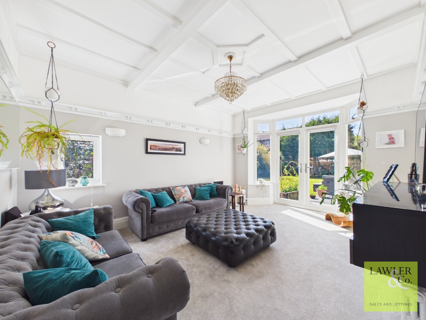 Upon entering, you are immediately welcomed by an inviting entrance hallway which sets the tone for the quality that follows. To the front, a charming separate dining room features a beautiful bay window and multi-fuel burner with surround, creating a warm and atmospheric space ideal for both formal dining and cosy evenings. The family sitting room provides a relaxing retreat and benefits from French doors opening directly onto the rear garden, effortlessly connecting indoor and outdoor living.