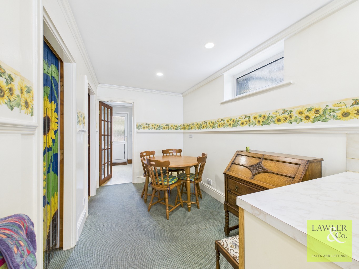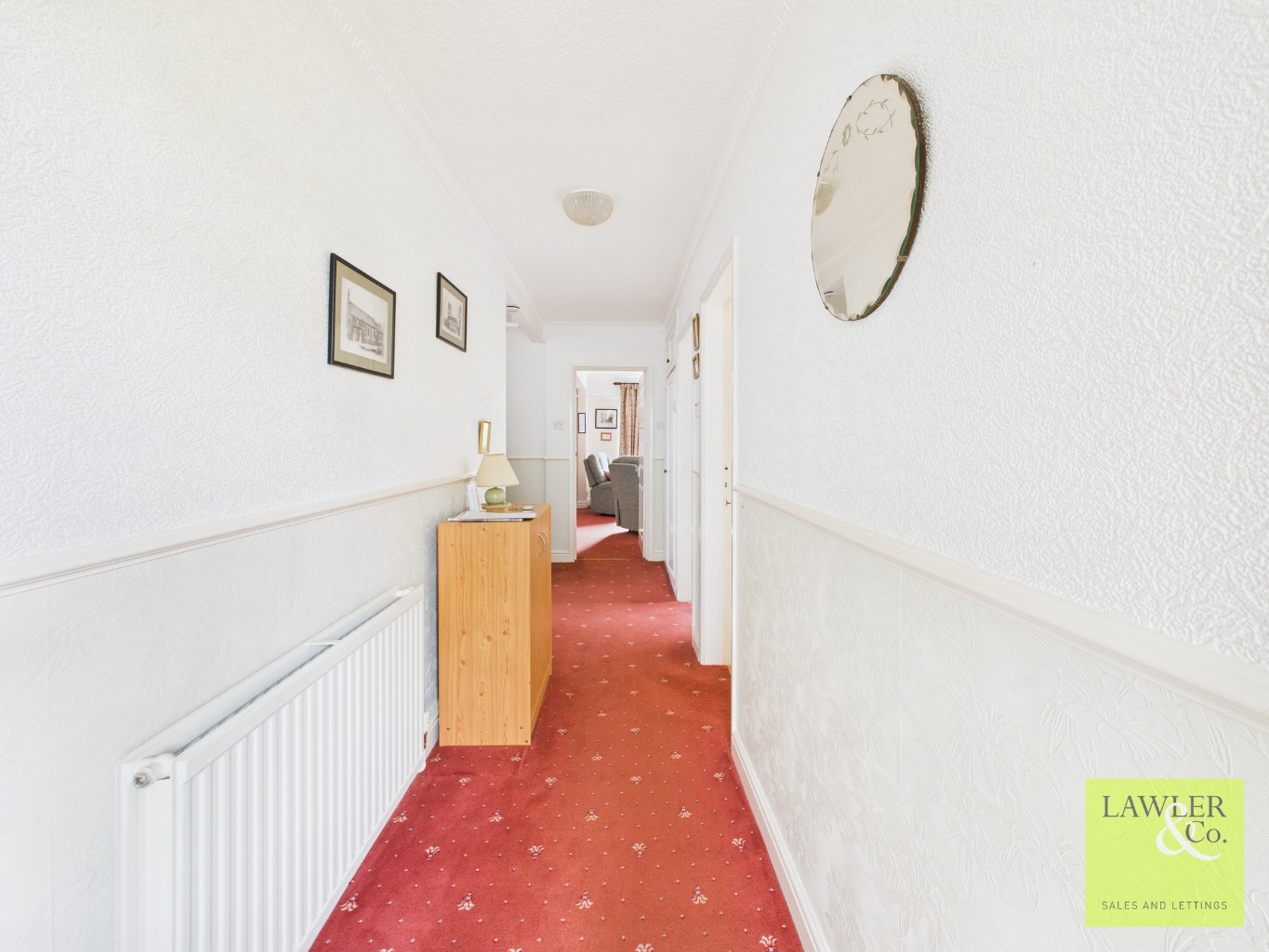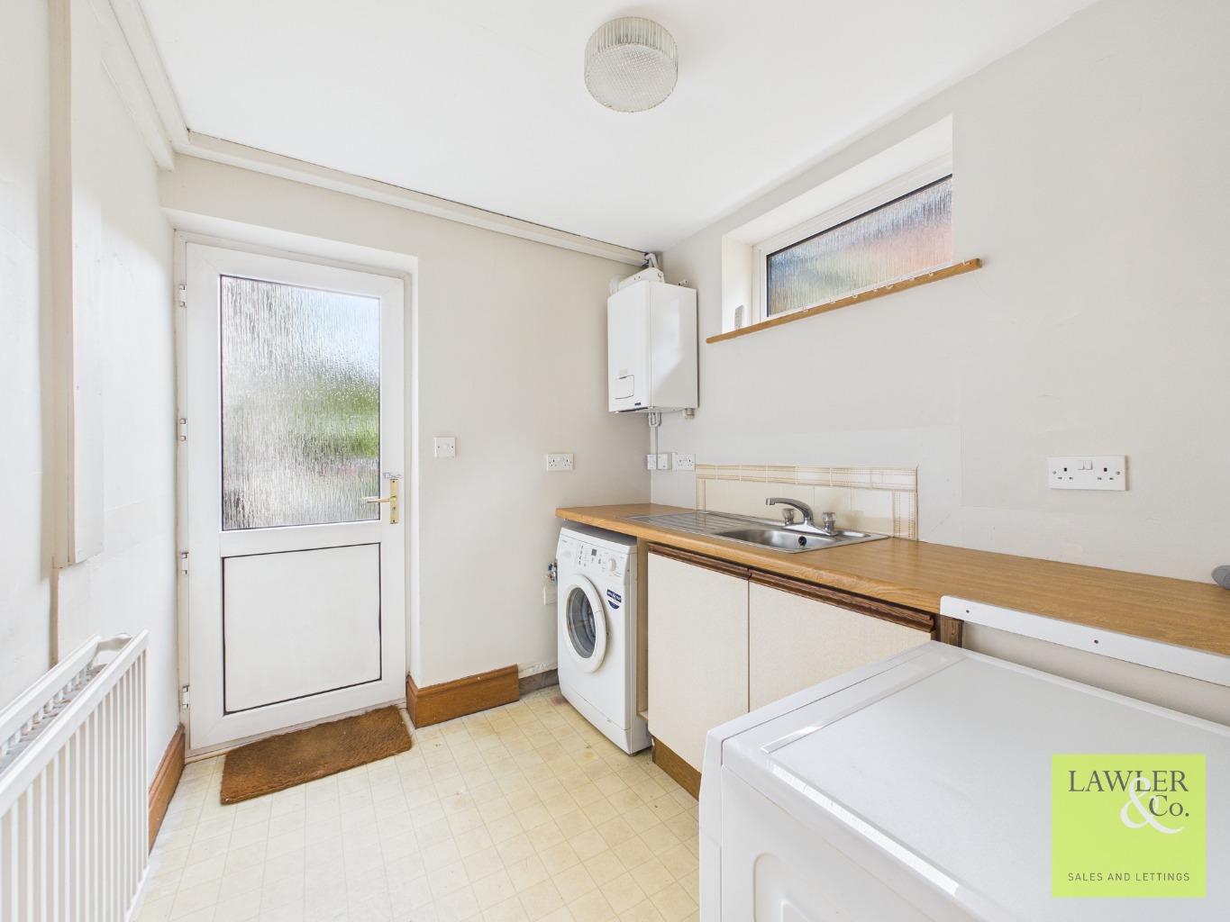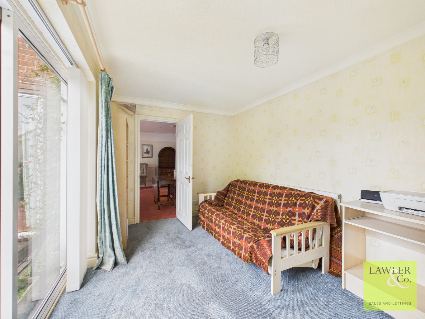 Upon entering the property, you are greeted by a charming tiled porch that opens into a generous hallway, featuring decorative coving, picture rails, a convenient storage cupboard, and additional under-stair storage. At the front of the home, a bright and versatile room offers flexible use as a bedroom, office, or playroom, complete with decorative coving. The partially tiled family bathroom includes a bath with shower attachment, wash basin, WC, and stylish decorative coving. The spacious living room boasts decorative coving, an electric flame-effect fireplace, and sliding patio doors that open onto the south-facing garden—perfect for indoor-outdoor living. Adjacent to the living room, a practical conservatory also features decorative coving and sliding doors leading to the rear garden, ideal for relaxing or entertaining. The generous kitchen/diner offers matching wall and base units and comes equipped with a Bosch dishwasher, Indesit fridge/freezer, and an electric oven with gas hob. There’s also ample space for a family dining area. A useful utility room provides space for both a washing machine and dryer, with direct access to the driveway via a side patio. Additionally, a rear porch offers convenient access to the garden.