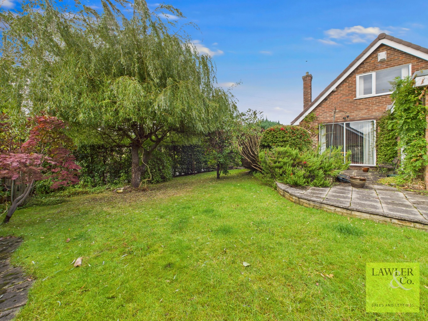 To the front of the property, a generous driveway provides ample off-road parking for several vehicles and leads to an integral garage. At the rear, a delightful south-facing garden awaits—predominantly laid to lawn and bordered by mature trees and shrubs. A spacious paved patio area offers the perfect setting for outdoor entertaining and social gatherings.