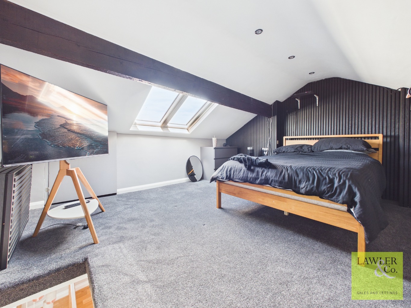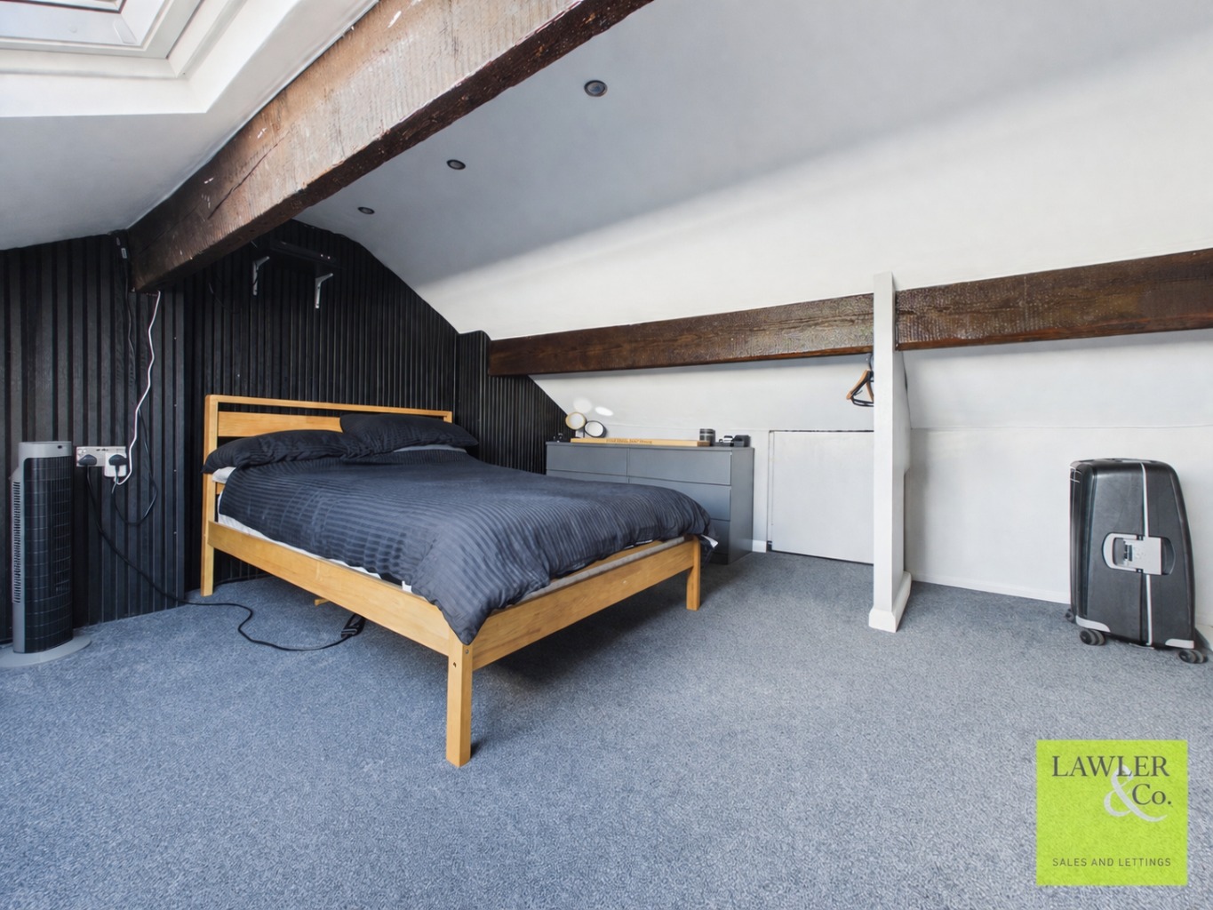 Arranged over four floors, this spacious and characterful family home enjoys a superb position just a short stroll from the heart of Disley village, offering a wonderful blend of period charm and versatile modern living. A private entrance hallway immediately sets the tone, featuring attractive patterned tiling and an intercom system for added convenience and security. To the right, the impressive lounge provides a warm and inviting reception space, beautifully enhanced by two original working fireplaces and dual-aspect windows that flood the room with natural light, highlighting the high ceilings and charming period details. On the upper floor, the first generous double bedroom enjoys pleasant views over the rear aspect, creating a peaceful retreat. A second spacious double bedroom benefits from large windows and an abundance of natural light. Adjacent is the well-appointed family bathroom, fitted with a bath and shower over, glazed screen, wash basin, WC and radiator. Throughout this level, the tall ceilings, expansive windows and retained character features continue to impress. Completing the upper accommodation, the loft has been thoughtfully converted into an additional living space, offering excellent versatility as a home office, snug or occasional bedroom. With Velux windows, exposed wooden beams and useful storage, it is both practical and full of charm.