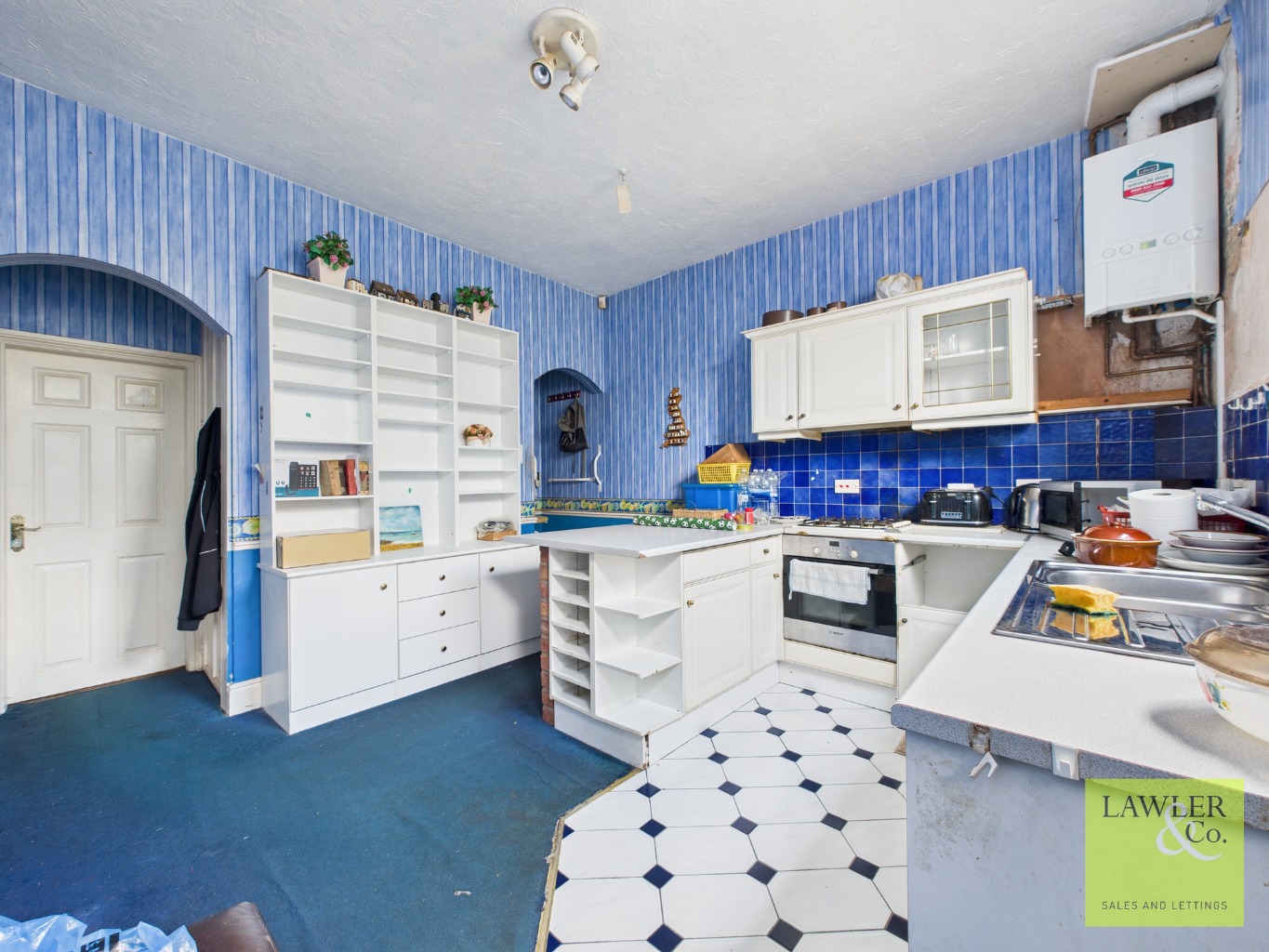 This two-bedroom mid-terrace home offers a fantastic opportunity for buyers looking to put their own stamp on a property. Requiring full renovation, the home boasts a spacious living room at the front, followed by a kitchen with excellent potential to be transformed into a modern, functional space.