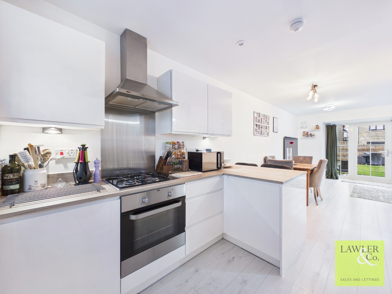 SPACIOUS OPEN-PLAN KITCHEN DINER WITH INTEGRATED APPLIANCES AND BREAKFAST BAR
