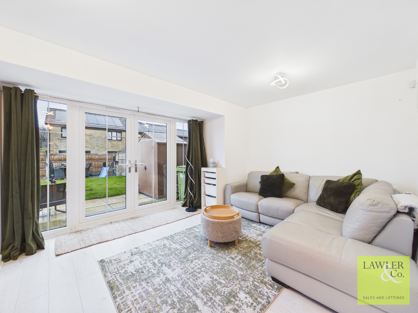 BRIGHT LOUNGE WITH FRENCH DOORS LEADING TO THE REAR GARDEN