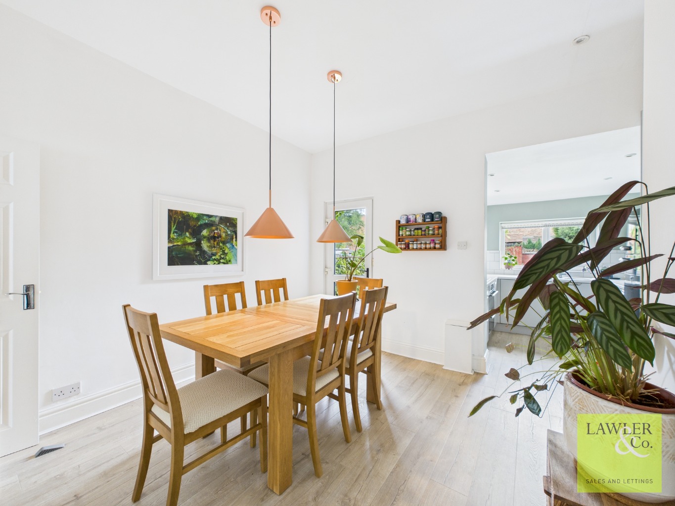 To the rear, the heart of the home awaits — a spacious open-plan kitchen and dining area that’s perfect for both casual meals and dinner parties alike, integrated storage space suitable for housing of washing machine/dryer and general storage. The contemporary kitchen is fitted with sleek integrated appliances including a hob, oven, and dishwasher, plus the added bonus of a downstairs WC for extra convenience whilst providing access to the cellar. The cellar chamber houses excellent storage spaces.