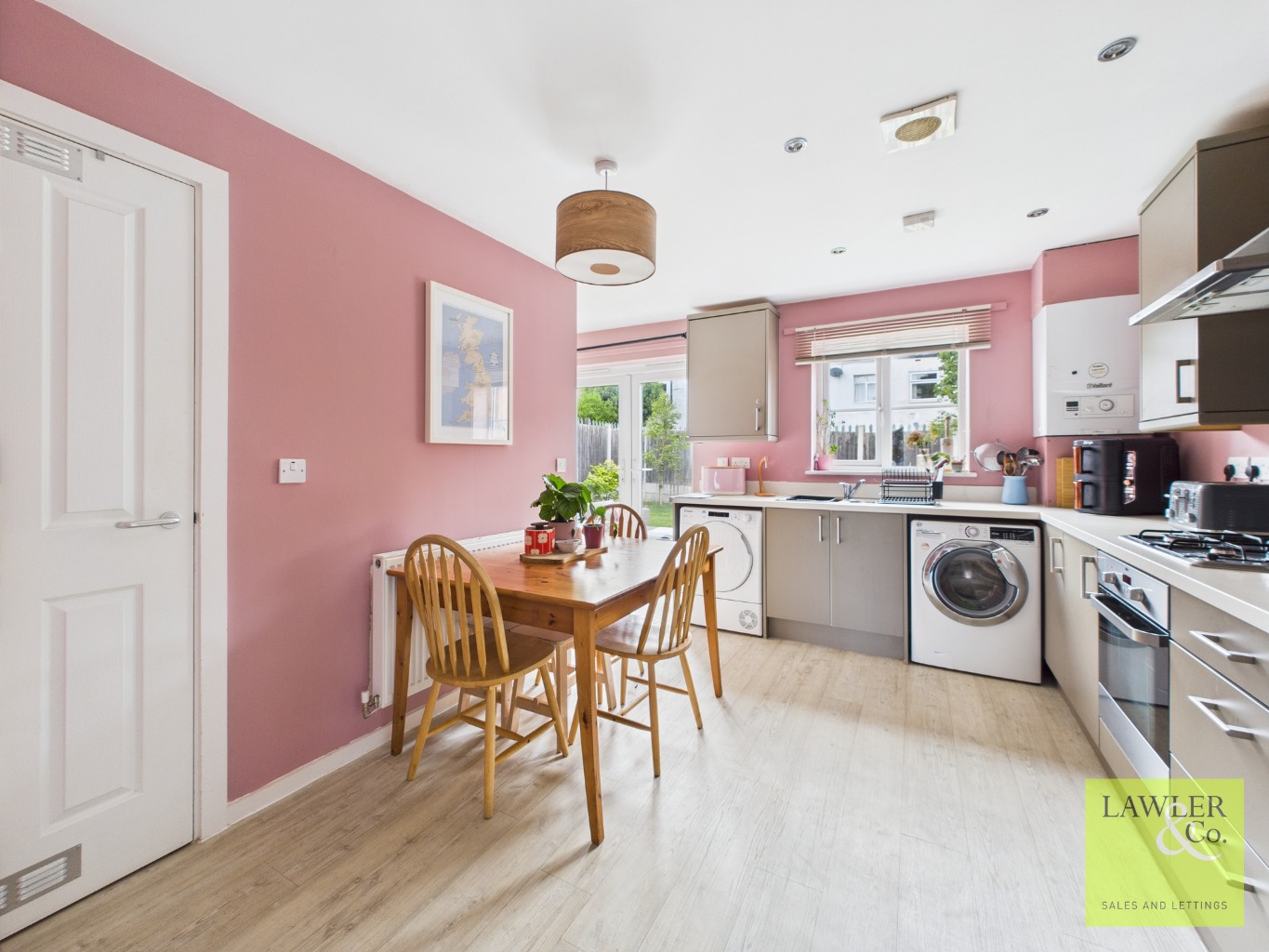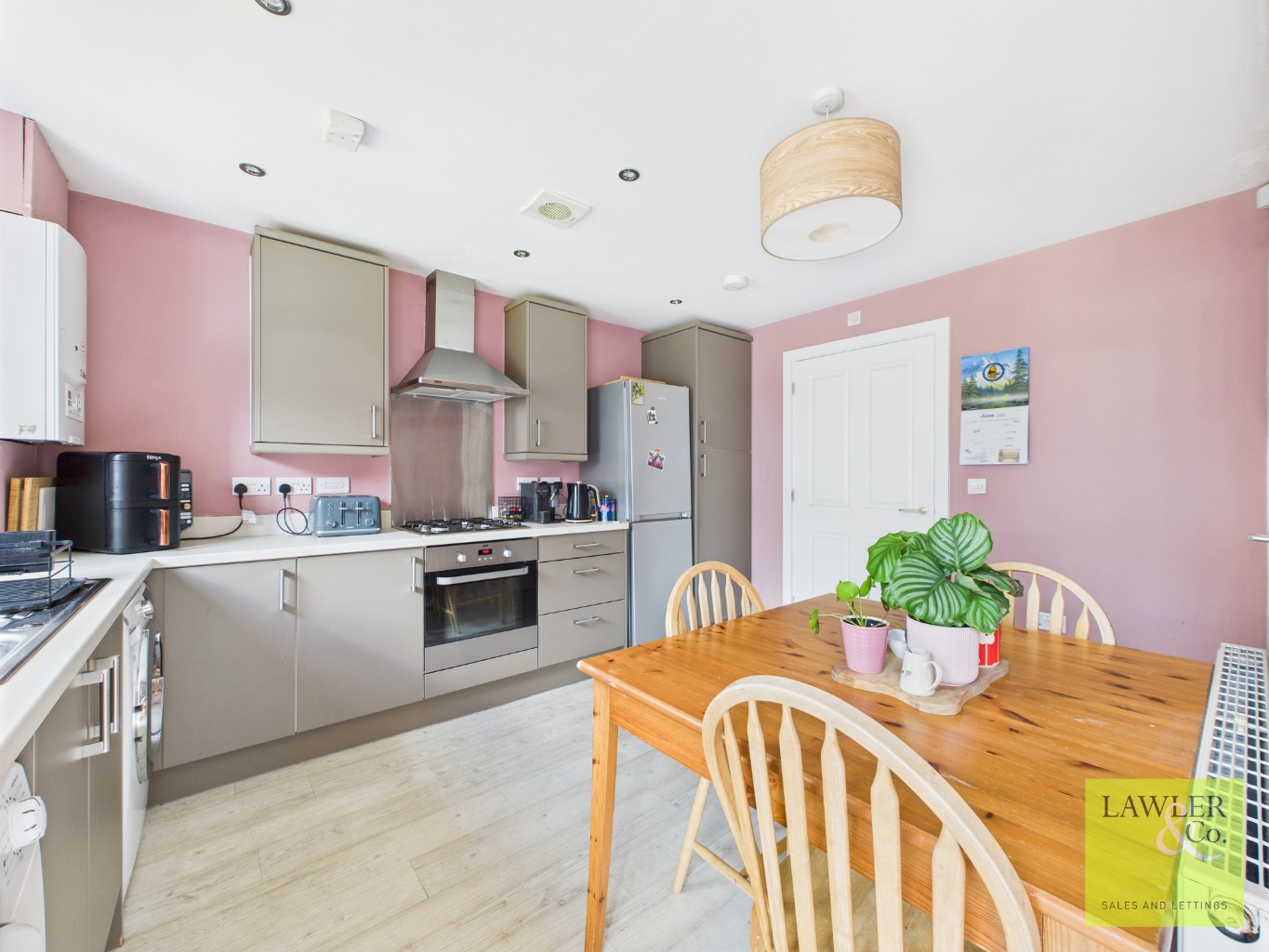 Internally, the property boasts a spacious and light-filled reception room, ideal for relaxing with family or entertaining guests. This inviting space leads through to a modern open-plan kitchen and dining area, offering ample room for a family dining table. The kitchen is well-equipped with contemporary units, integrated appliances; including hob, oven and fan above; and plenty of storage – the perfect setting for home cooking and casual dining alike.