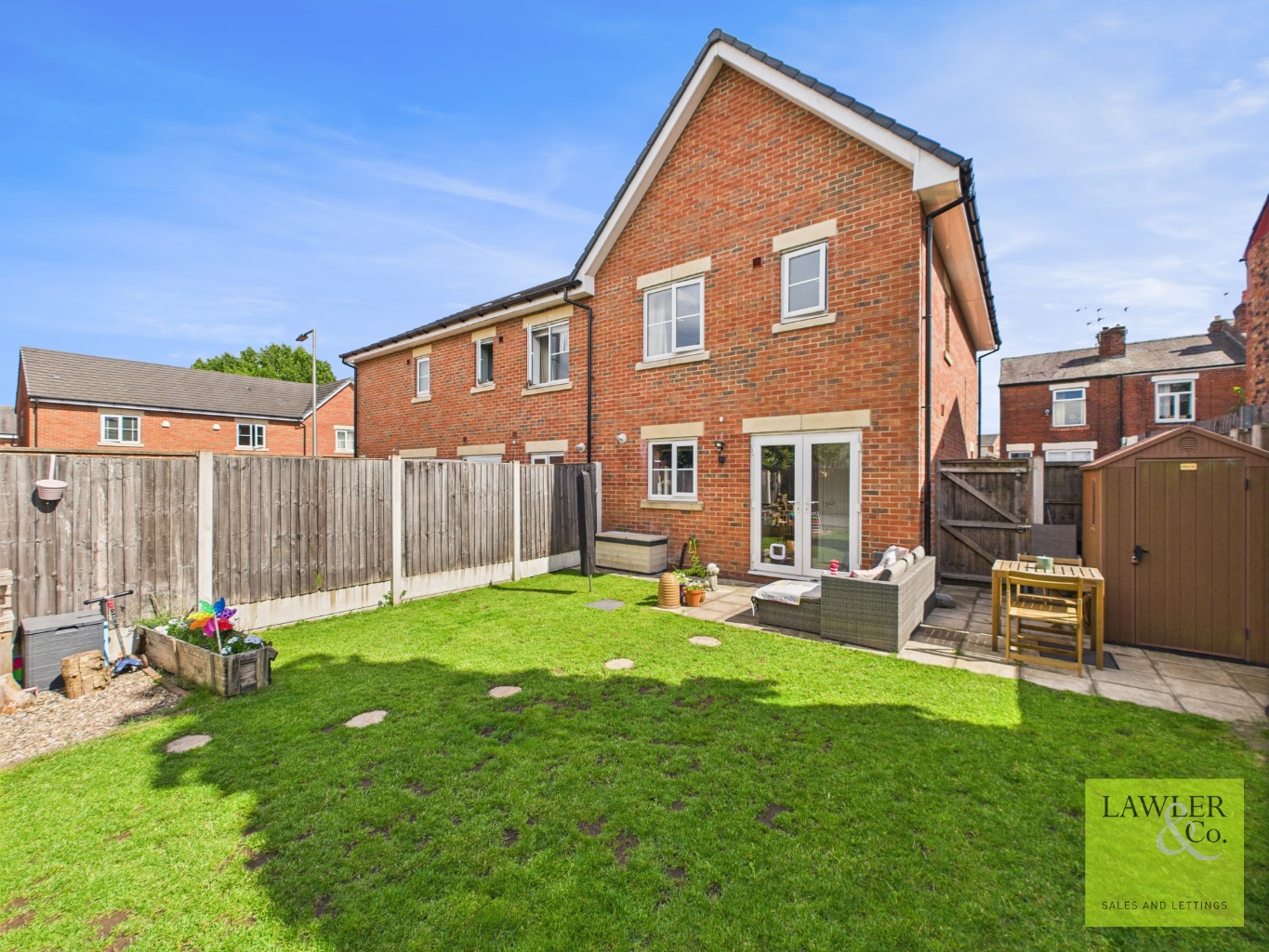To the rear, the property boasts a sizeable, enclosed garden – a wonderful outdoor space with plenty of room for children to play, gardening enthusiasts to enjoy, or for hosting summer BBQs. With both patio and lawned areas, it provides a private and secure retreat for all the family.