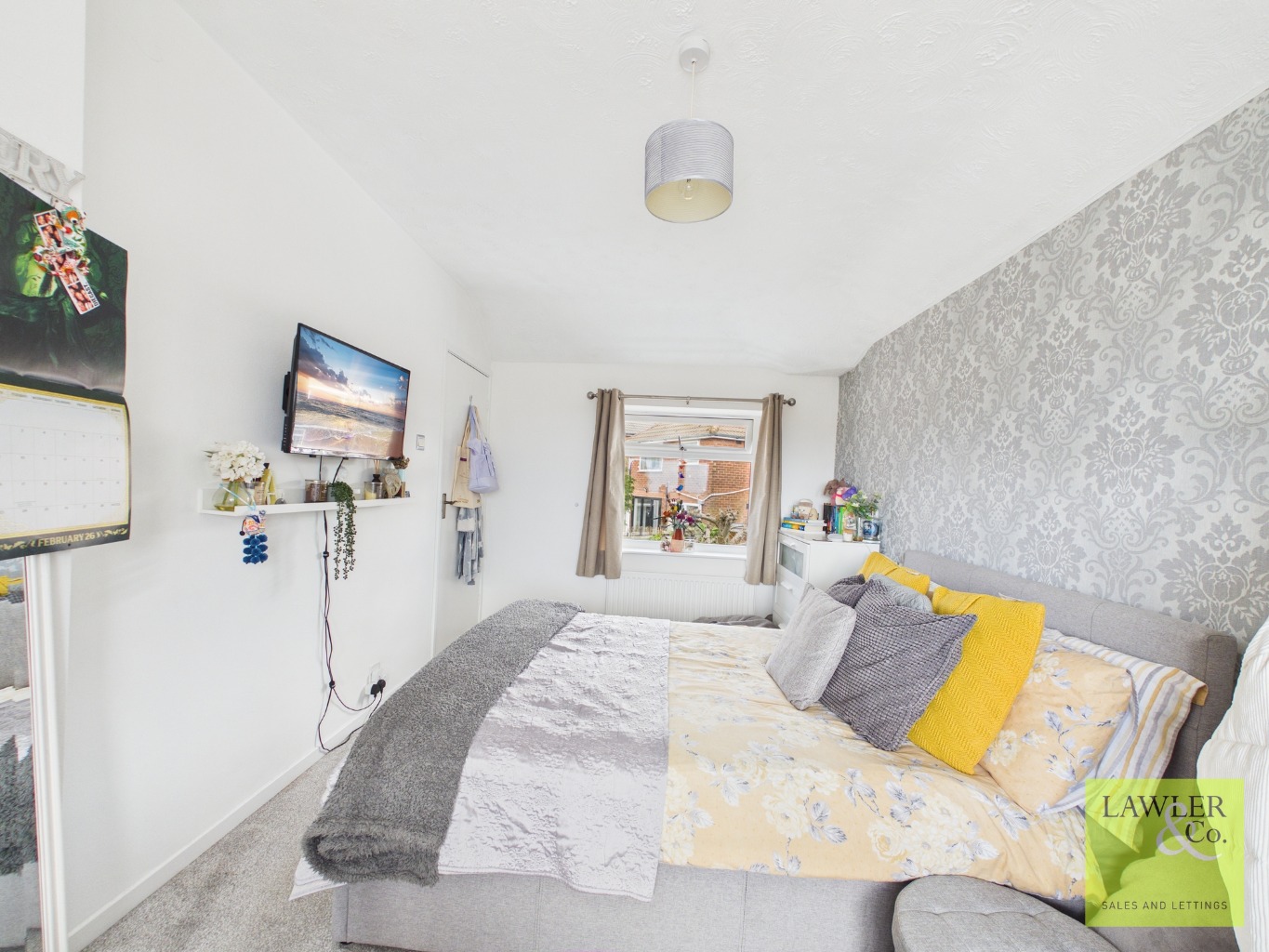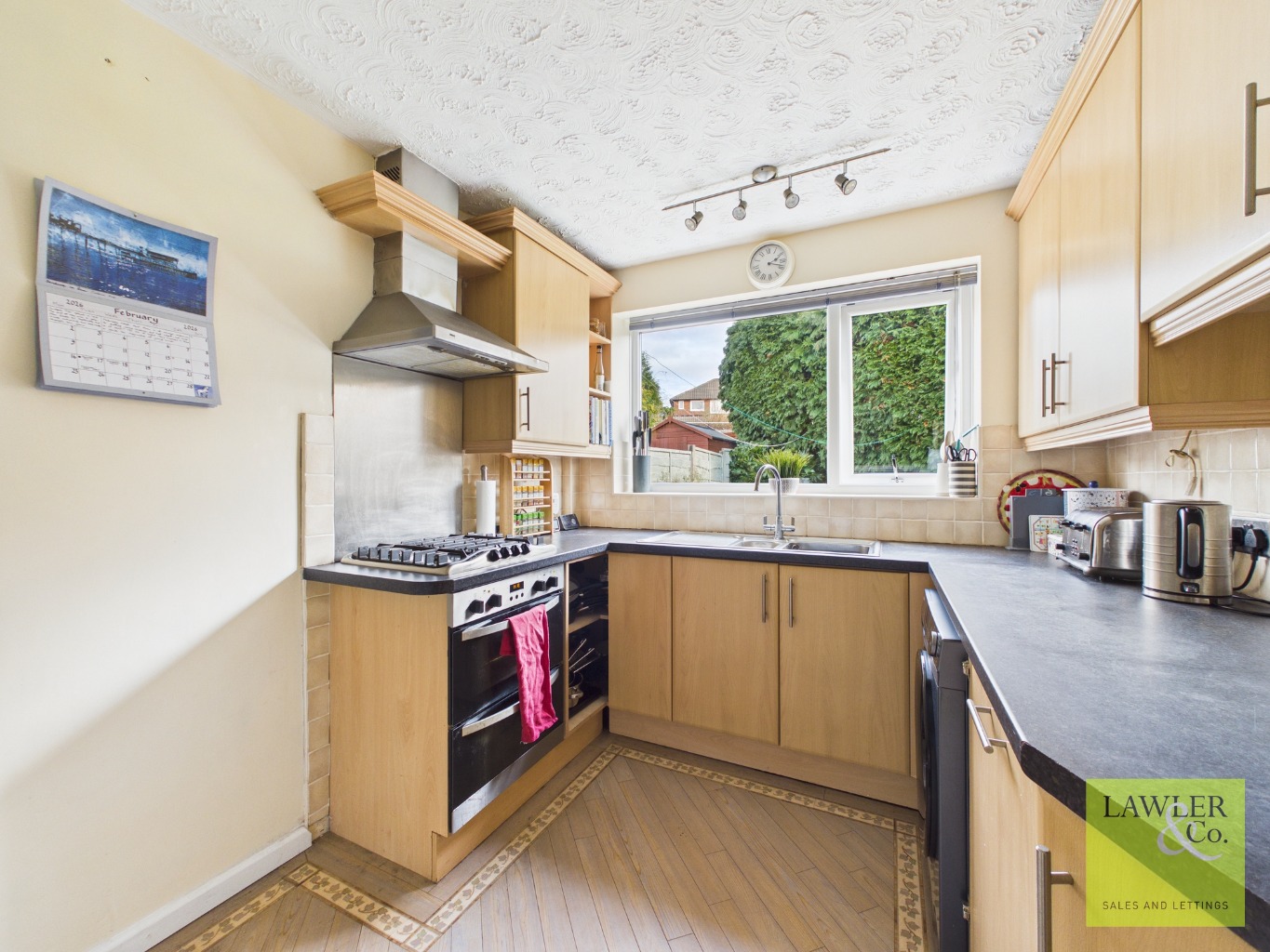 Accessed through a practical porch, the home welcomes you into a well-proportioned hallway, finished with decorative dado rails that add character to the space. The spacious open-plan living and dining room provides a flexible area for both relaxing and entertaining, highlighted by a fireplace with an attractive surround serving as a charming focal point. A charming archway flows through to the dining area, where patio doors open onto the East-facing garden, allowing natural light to brighten the room. The partially tiled kitchen is fitted with matching wall and base units and includes a Zanussi electric oven with gas hob and extractor fan, a Beko dishwasher, and space for additional appliances catering to everyday needs.