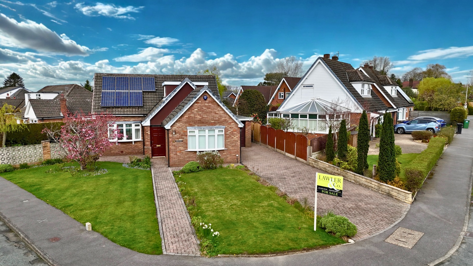 To the front of the property, this substantial corner plot offers ample off-road parking for multiple vehicles, complemented by a neatly lawned area on two sides that enhances the kerb appeal. A pathway leads up to the front door and gated access down both sides of the property. There is also fully owned solar panels and access to the integral garage, complete with an electric up-and-over door. The well-maintained and generously sized rear garden features two elegant weeping willows that frame the space beautifully. Mature shrubs and bushes offer a sense of privacy, while the patio area provides the perfect spot for outdoor seating.