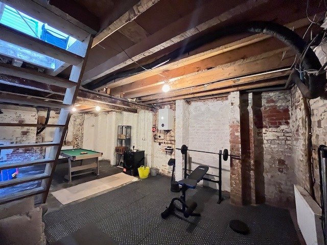 Inside, you’ll be greeted by a spacious lounge featuring a bright bay window, leading through to a stylish open-plan kitchen-diner complete with central island, breakfast bar, abundant storage for white goods, and a direct access hatch and staircase down to the full-length cellar—ideal for extra storage.