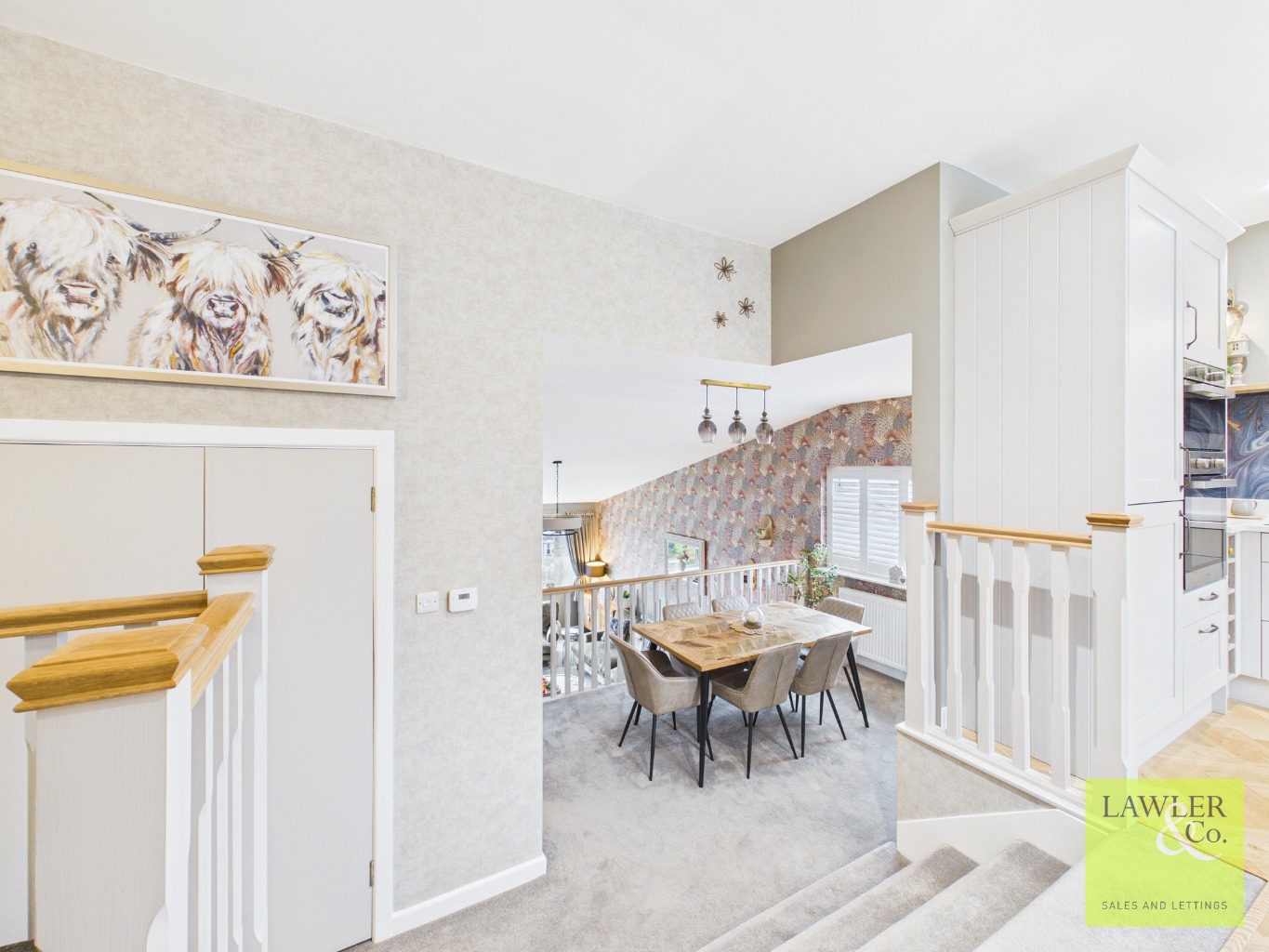Step inside and the quality of the home is immediately evident. A full rewire and new central heating system complement the top designer finish throughout. The split-level layout creates a bright, flowing space that feels both open and connected.