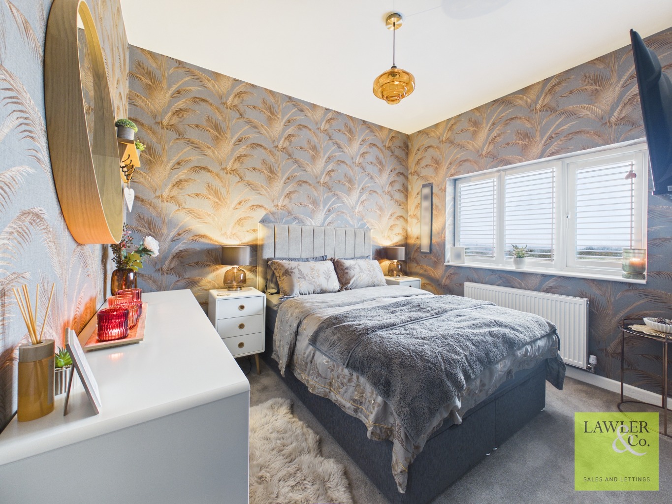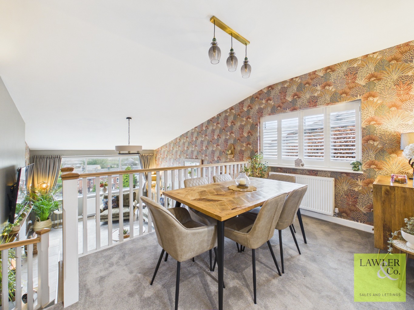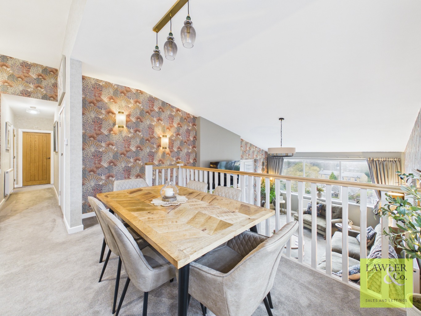 The lounge is a standout featuring a inset log-burning stove with a timber mantle and limestone hearth,and a large, light-filled window that perfectly frames breathtaking views. From here, watch sunsets over the Manchester skyline.