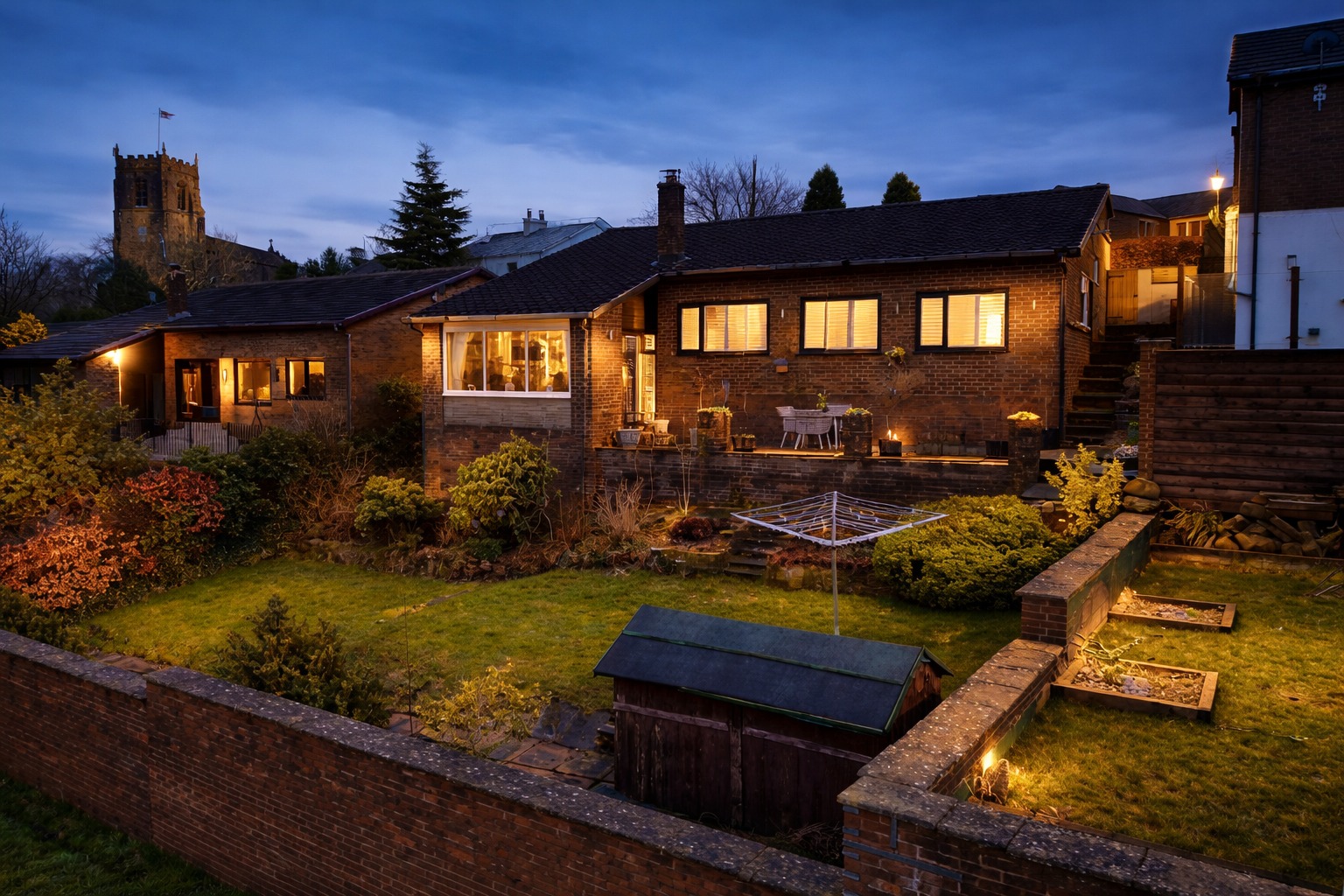 SOUTH-WEST FACING GARDEN WITH UNINTERRUPTED SUNSET VIEWS OVER MANCHESTER