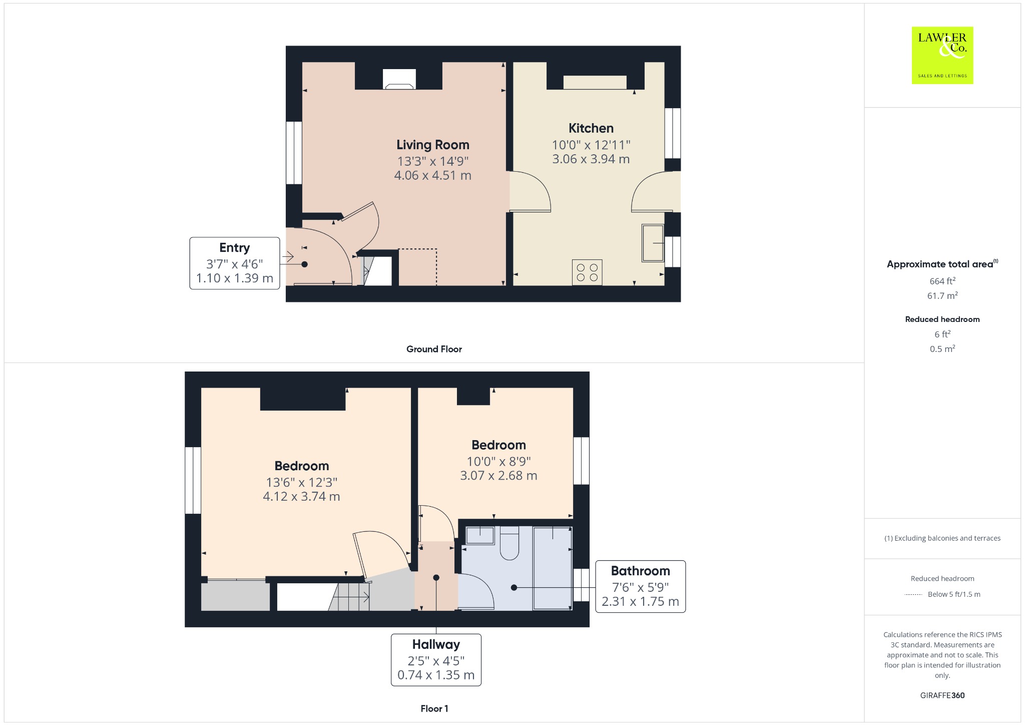 To the first floor, you’ll find the generously sized master bedroom, complete with fitted wardrobes offering ample storage. The second bedroom enjoys a pleasant outlook over the rear garden, making it an ideal space for a guest room, home office, or nursery. The partially tiled family bathroom is well-appointed with a vanity wash basin, a bath with overhead shower, a heated towel rail, and a WC — combining both style and functionality.