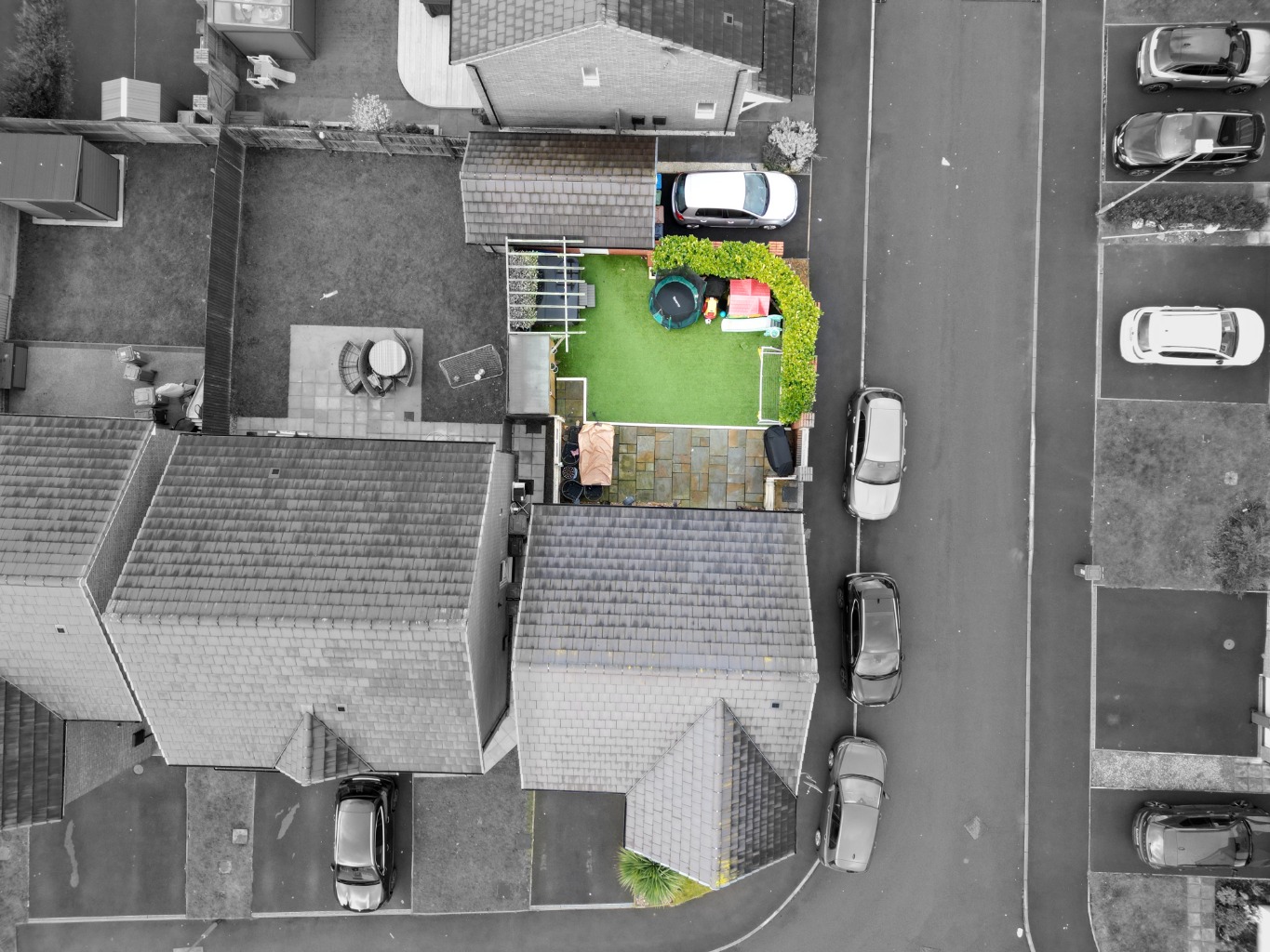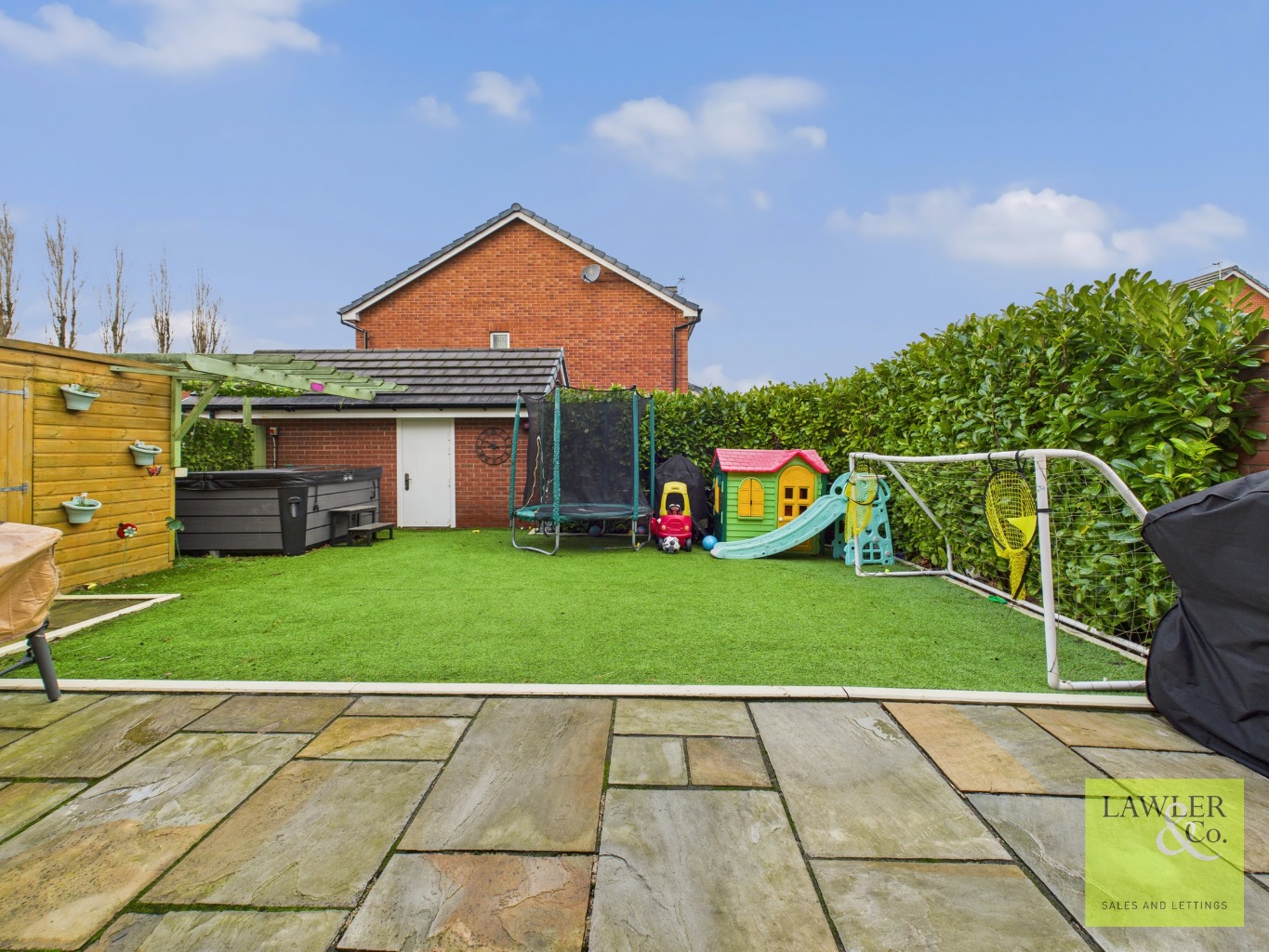 Outside, the property enjoys a good degree of privacy. Off-road parking is available for two vehicles, with a driveway to the front of the house and a further driveway leading to the garage. The low-maintenance rear garden is ideal for children, pets, or relaxed outdoor living. Added features such as outside electrics, an alarm system, and the peaceful cul-de-sac location bring both convenience and peace of mind.