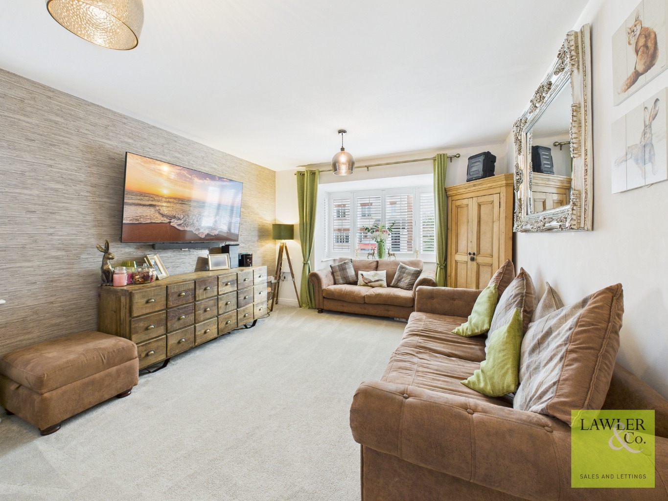 Upstairs, the home continues to offer comfortable family accommodation with four bedrooms. The main bedroom benefits from its own en-suite shower room, while a modern family bathroom serves the remaining bedrooms. The loft is fully boarded and accessed via pull-down ladders, providing excellent additional storage.