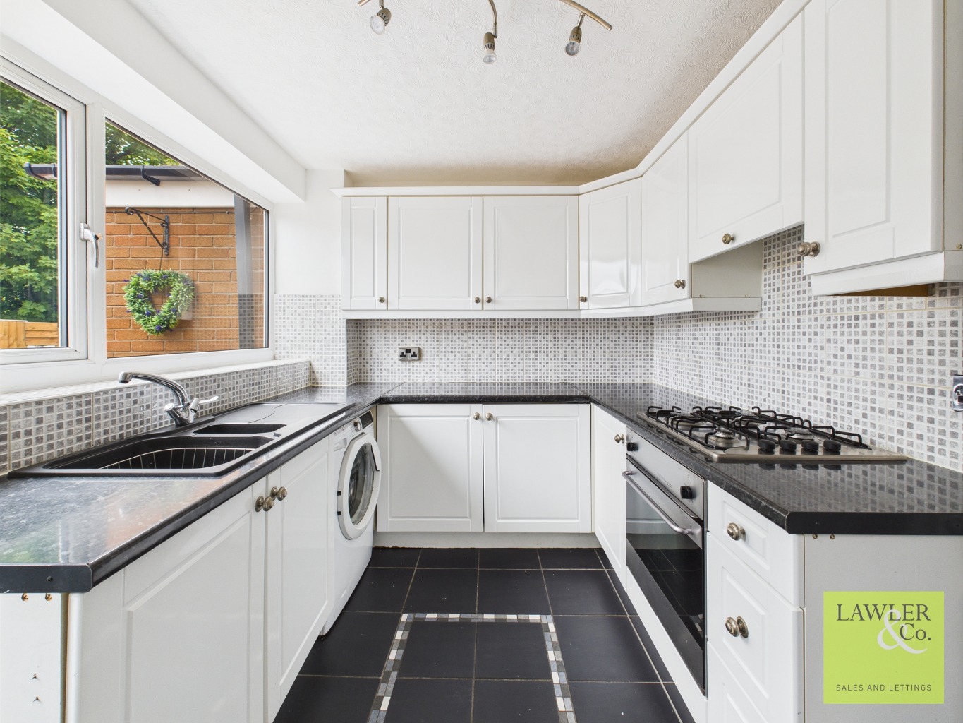 MODERN FITTED KITCHEN WITH GAS HOB, TILED SPLASHBACKS & AMPLE STORAGE