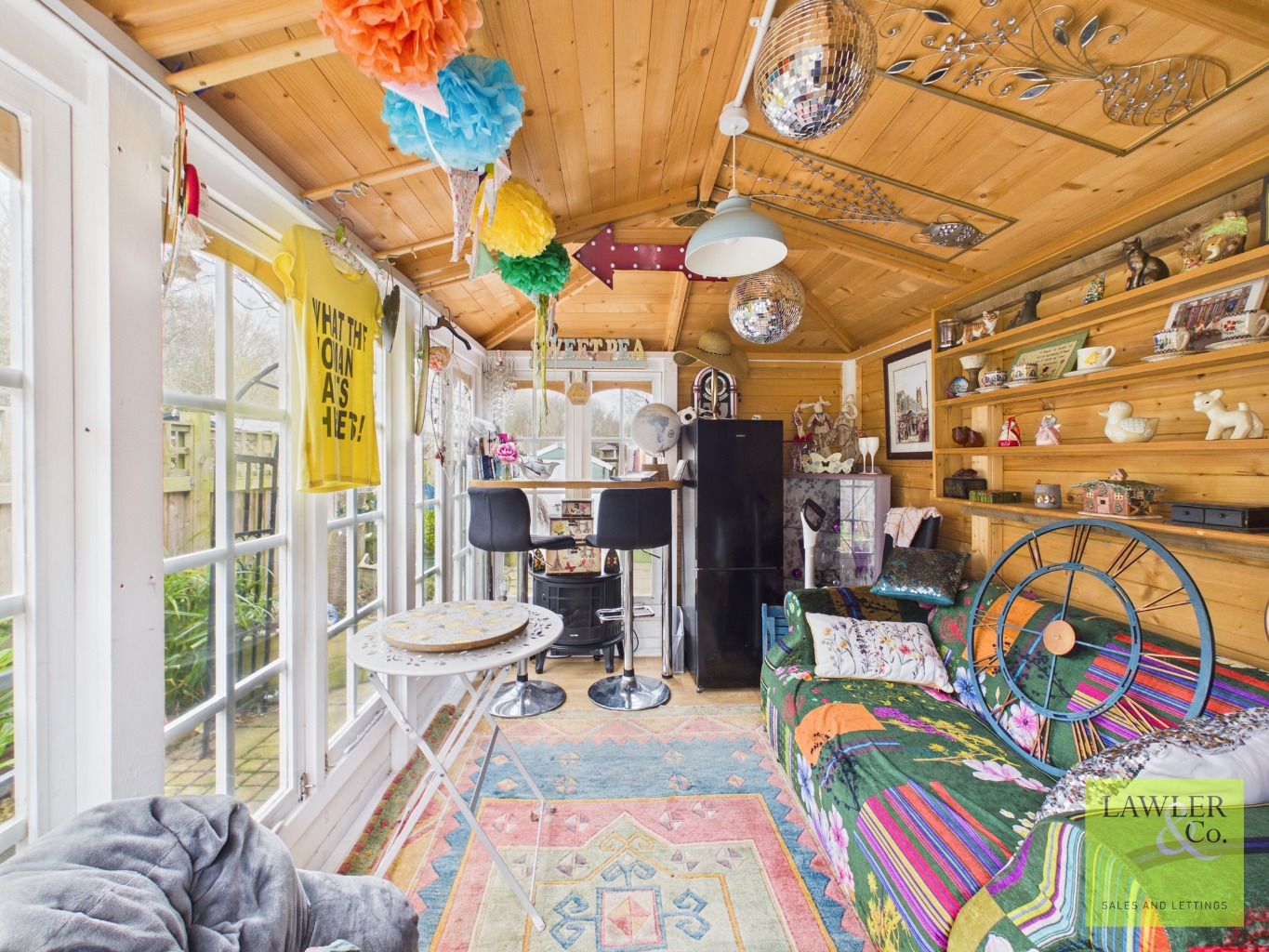 Externally, there is rear parking, a rear courtyard, and a large front garden complete with a stunning summerhouse enjoying uninterrupted countryside views. Internally, the décor is bright, stylish and uniquely finished, creating a warm and inviting home.