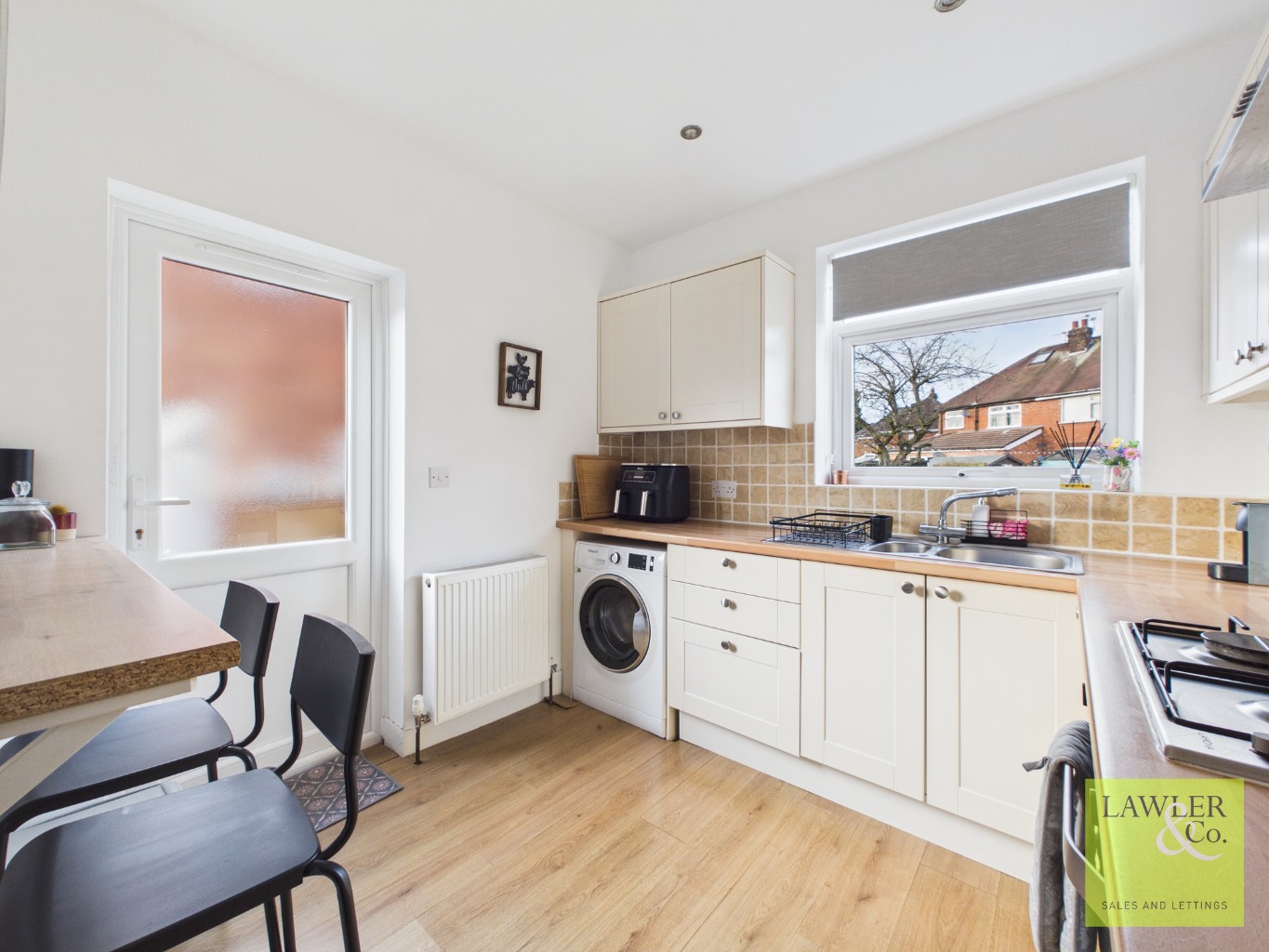 Step inside and you are welcomed by a bright and spacious entrance hallway that sets the tone for the rest of the property. The lounge/diner is a standout feature, enjoying dual aspects that flood the space with natural light throughout the day; offering generous proportions and effortless flow. The modern kitchen has been thoughtfully designed with both style and practicality in mind. Featuring integrated appliances, a breakfast bar for casual dining, and useful understairs storage with access to the rear.