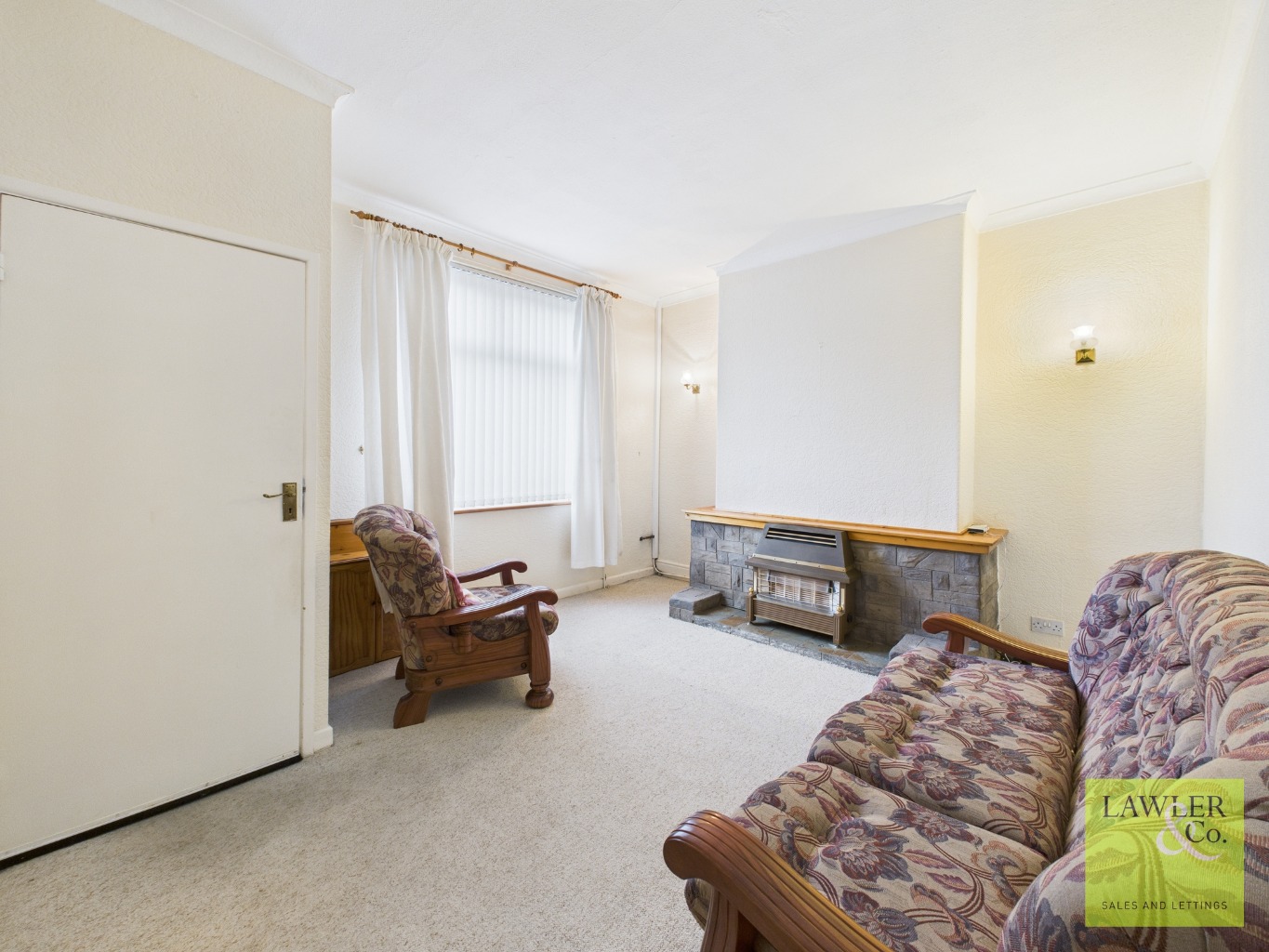 On entering the property, you’re welcomed into a small storm porch then through into the living room featuring decorative coving, alcoves on either side of the fireplace, providing a cosy yet spacious setting. Moving through to the spacious dining room with access to the small kitchen lean to and to the rear yard.