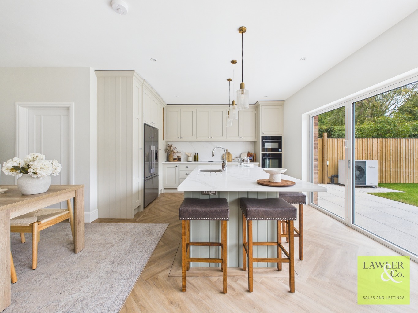 Truly the heart of the home. Discover an expansive 28ft open-plan living/dining/kitchen area, with bi-fold doors opening to a sun-soaked south-facing garden perfect for alfresco dining and entertaining.