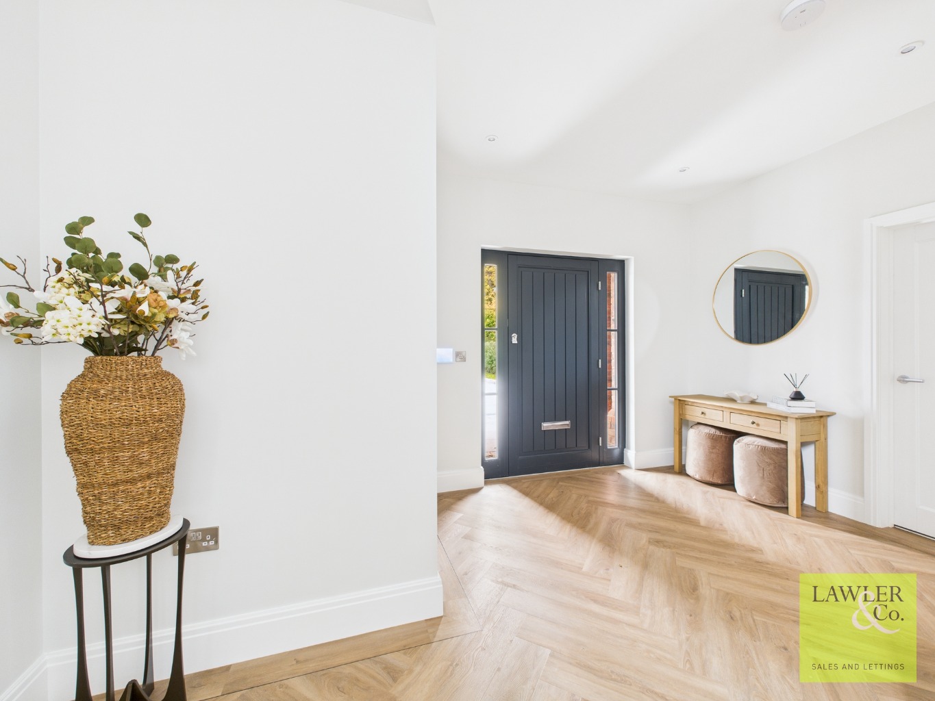 Welcoming porch entrance with a spacious and elegant entrance hall setting the tone for luxury within, with feature staircase and cloak cupboard