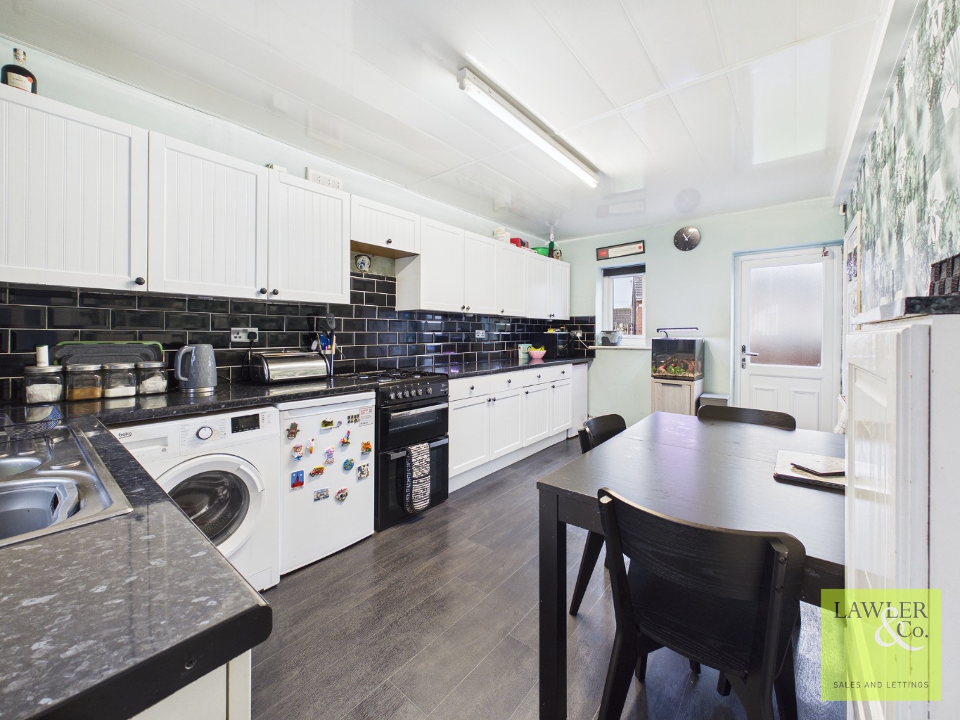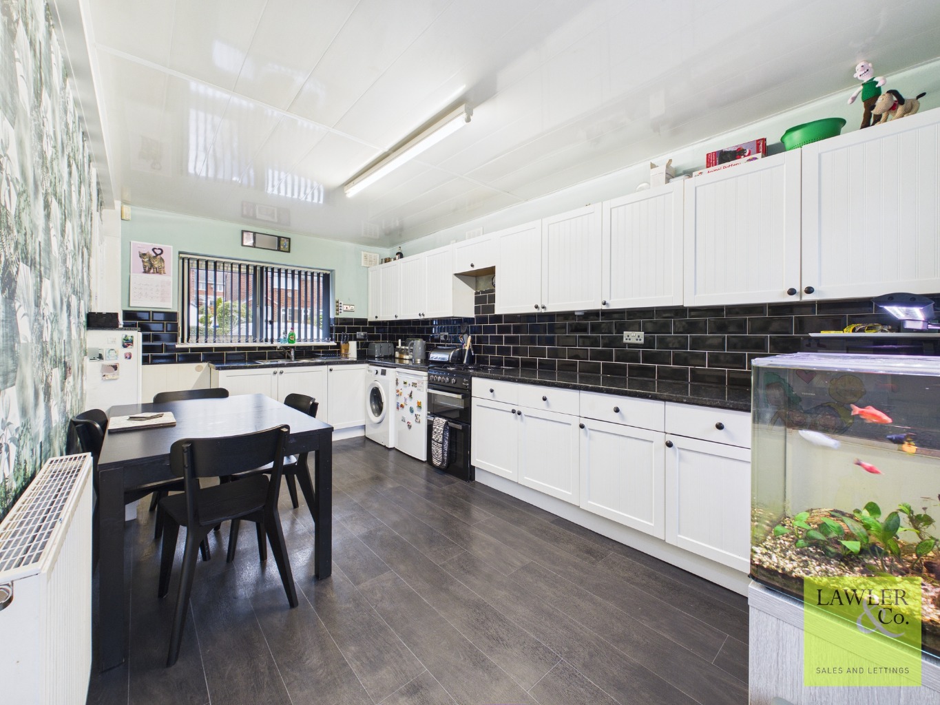 Upon entering the property, you are welcomed by a bright and inviting entrance hallway which leads directly into the main living spaces. To the right is the generously sized living room – a fantastic space ideal for family living, relaxing evenings or hosting friends and family. Its proportions allow for flexible furniture layouts, making it ideal for growing families or first-time buyers looking for room to settle in. To the left is the impressive dining kitchen, a real standout feature of the home. Not only does it provide ample cupboard and worktop space, but it is also large enough to comfortably accommodate a dining table – perfect for family meals.