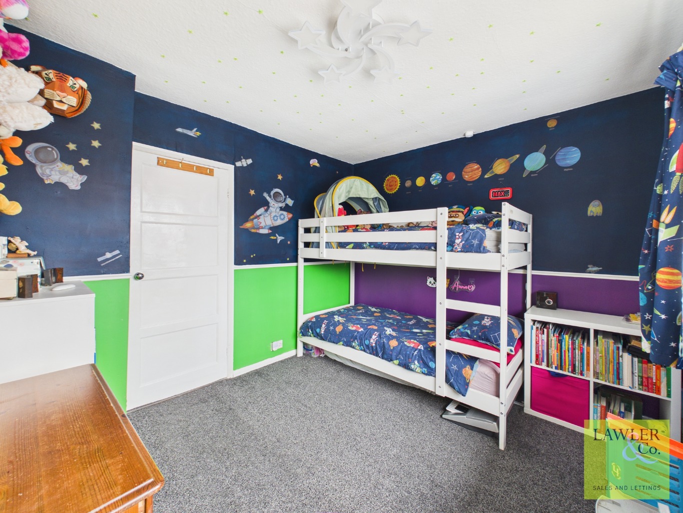 The sense of space continues upstairs with two generously sized bedrooms, both well-proportioned and ideal for a range of needs. The property also benefits from excellent storage throughout, including fitted wardrobes and a fully boarded loft, providing practical and easily accessible additional space.