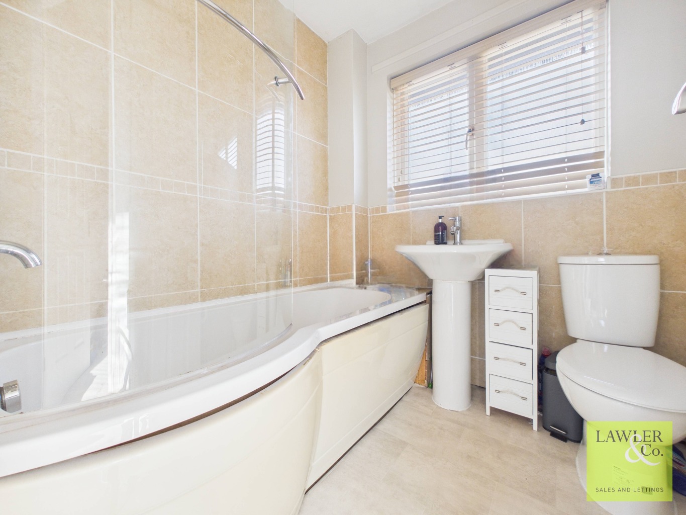 To the first floor, there are three bedrooms; two of which are doubles; with the master bedroom housing built-in wardrobes; served by a modern and tastefully presented three-piece bathroom suite.
