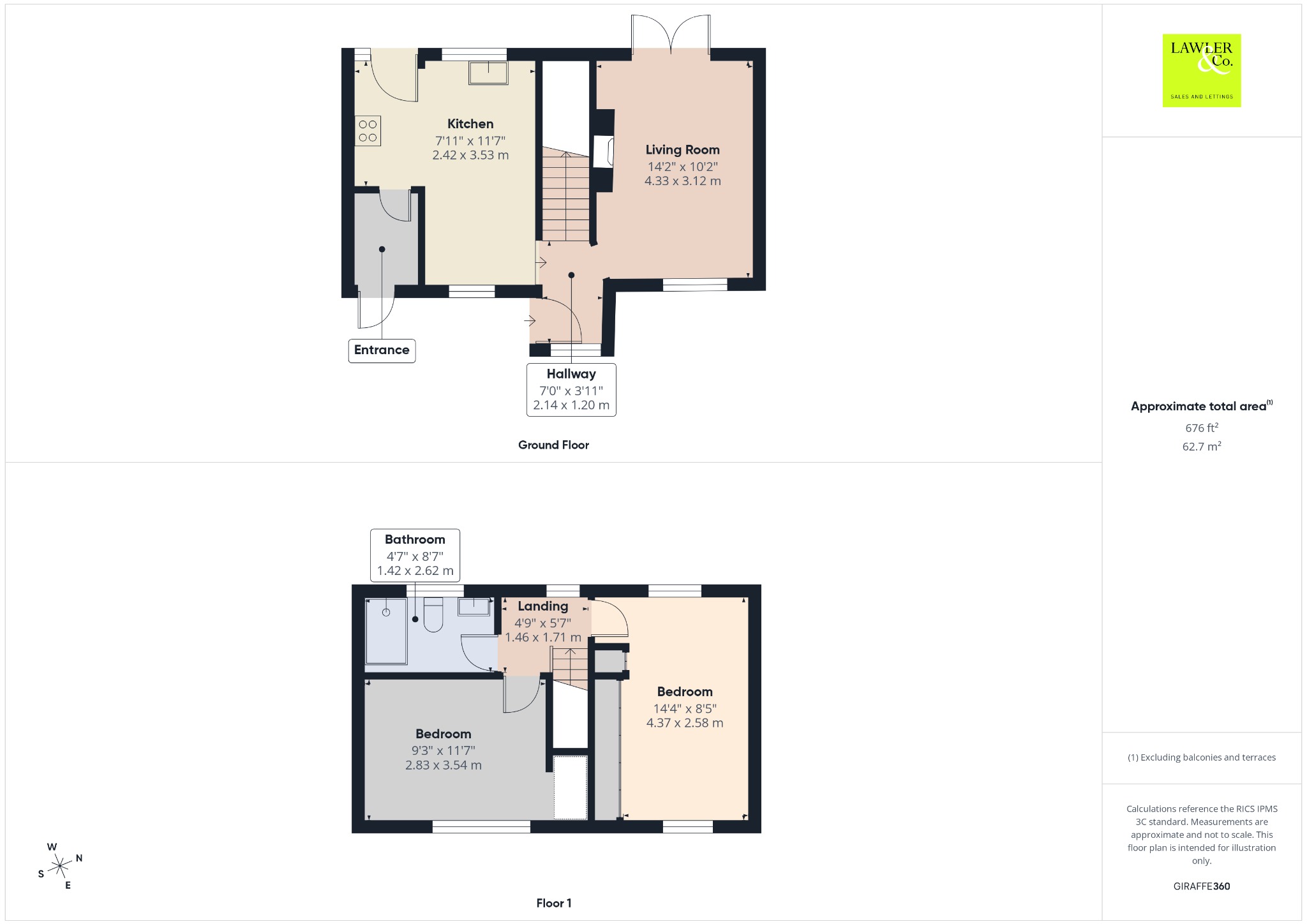 Upstairs, a bright and airy landing with loft access leads to the master double bedroom, which includes fitted wardrobes and decorative coving. A second double bedroom overlooks the rear garden, and the family bathroom is fitted with a large shower enclosure, floating wash basin, and WC.