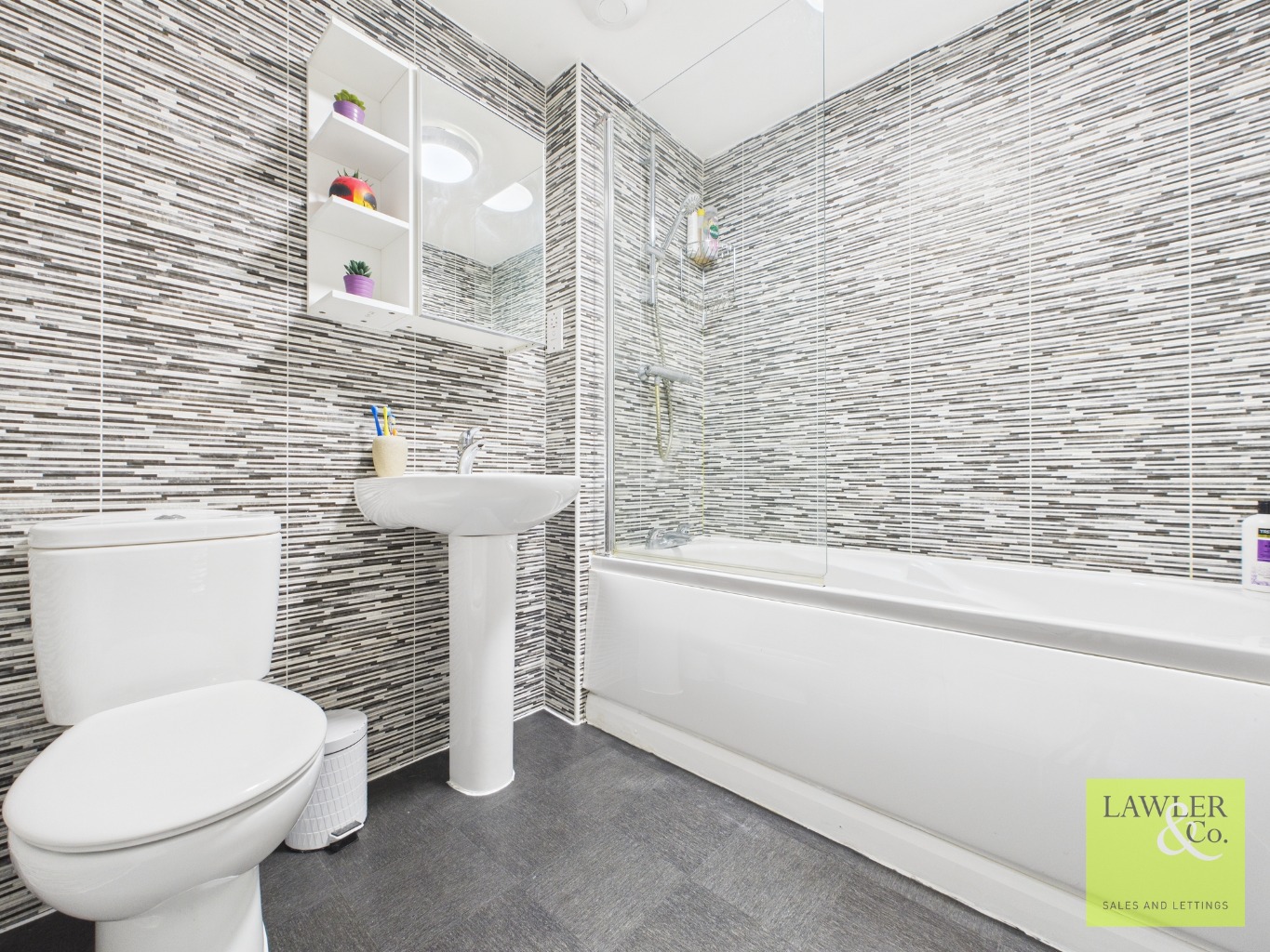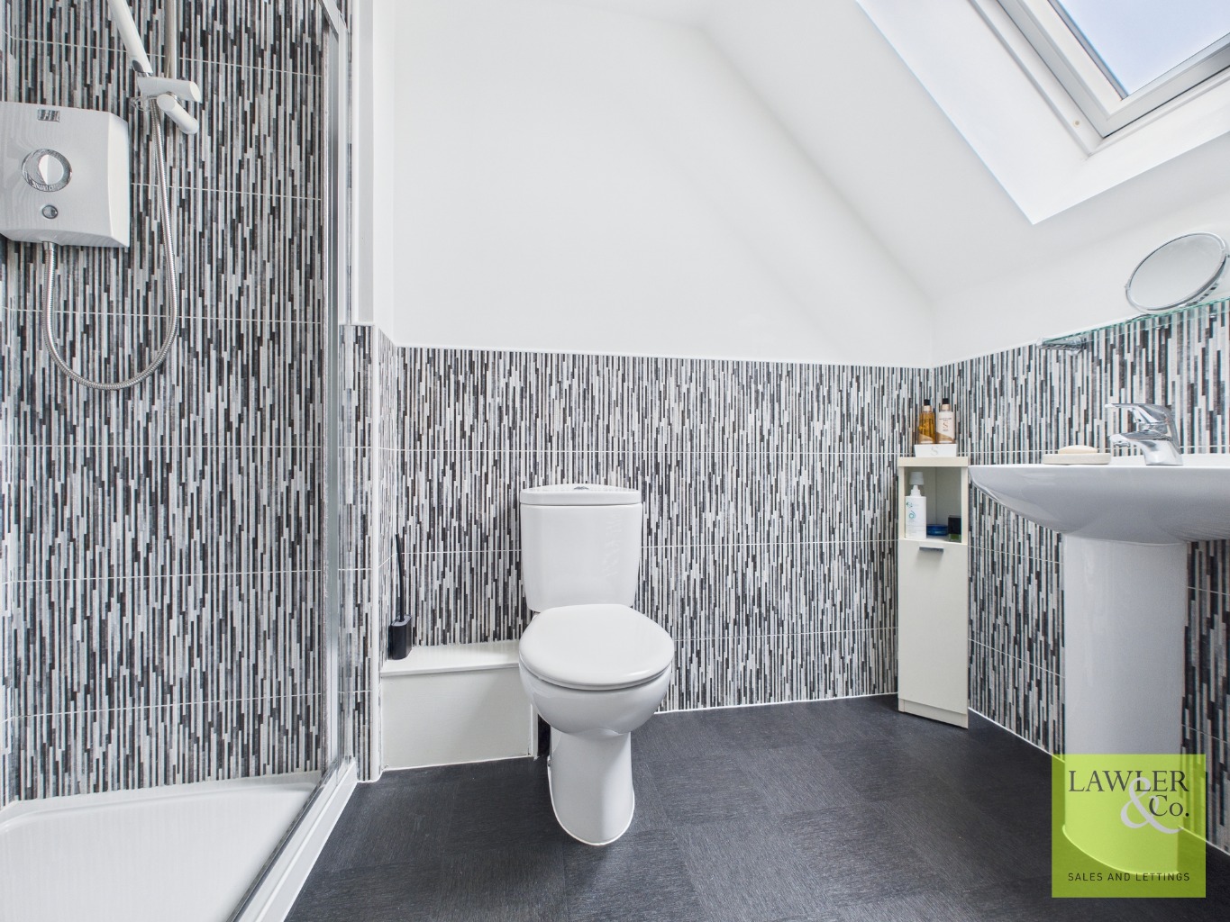 Upstairs, the property features three bedrooms, two of which are generous doubles. The main bedroom benefits from a modern three-piece en-suite bathroom comprising a shower, WC, and hand wash basin. A spacious family bathroom completes the first floor, fitted with a shower over the bath, hand wash basin, and WC.