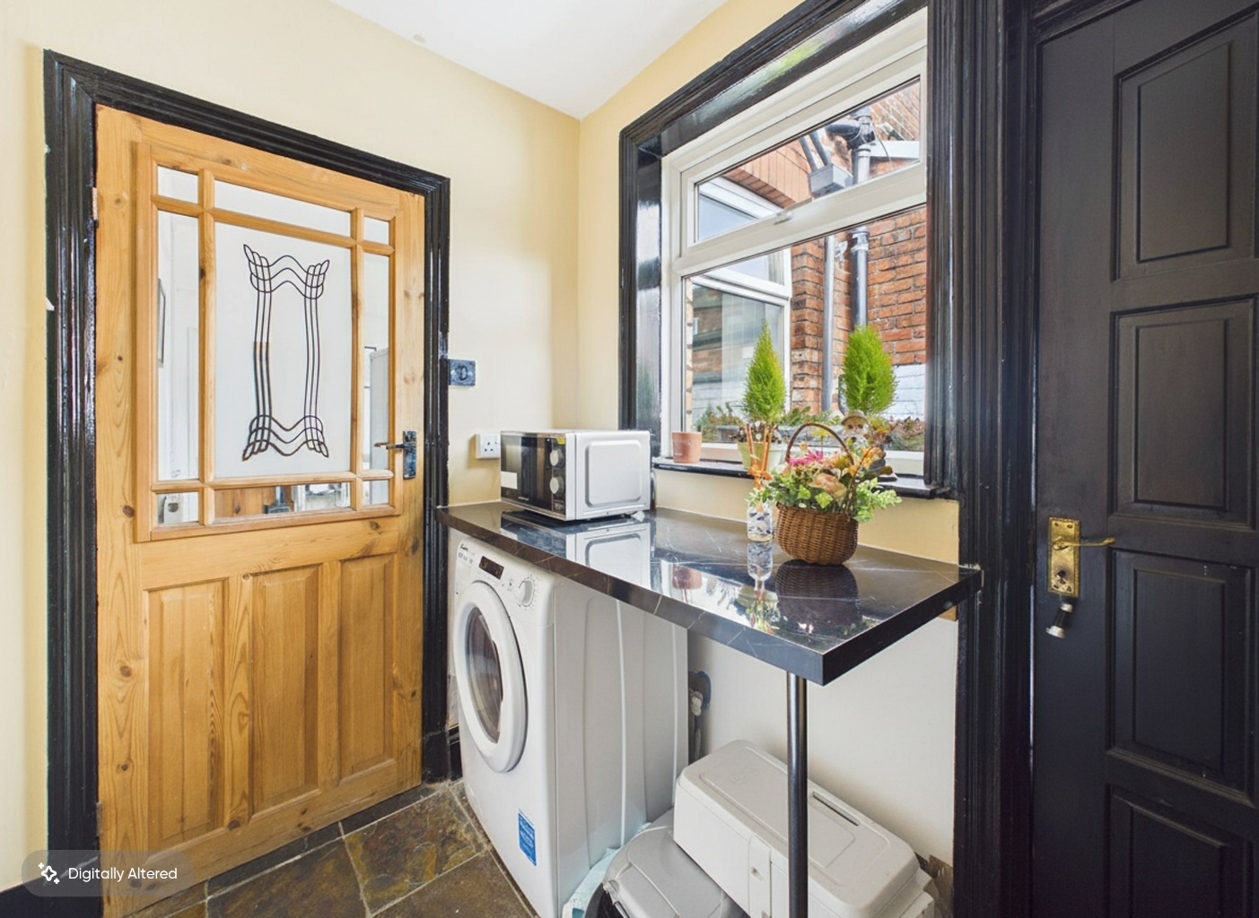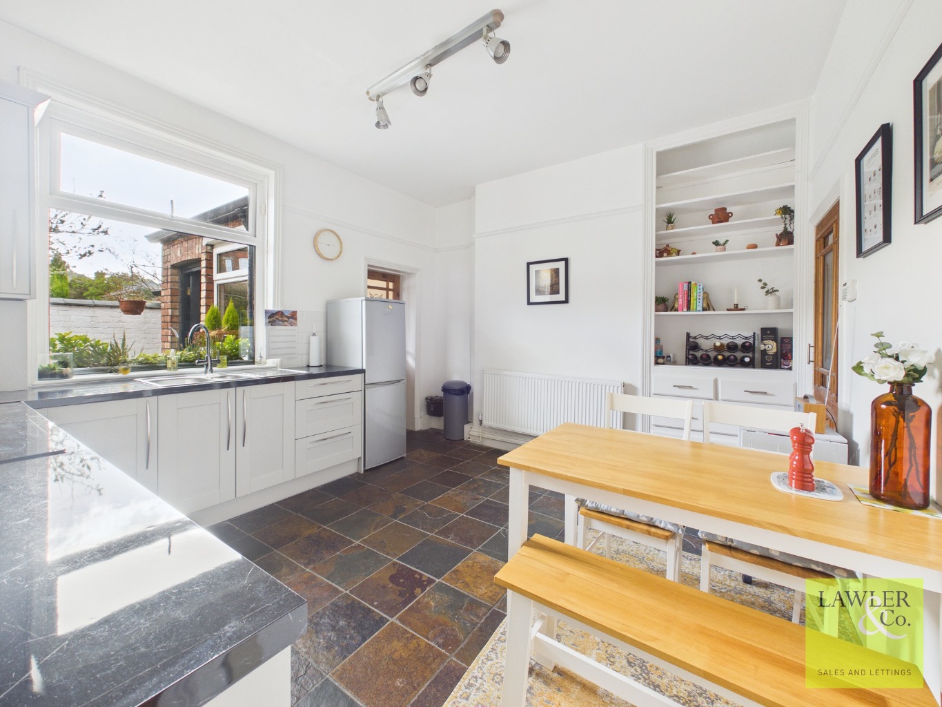Beyond the kitchen, a separate utility/laundry room offers additional convenience and leads directly out to the rear garden.