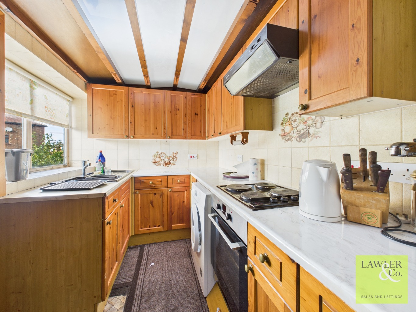 Step inside and you’re greeted by a long hallway, leading to the first reception room on the left. Further along, you’ll find the second reception room and a galley kitchen – a great layout with plenty of possibilities to modernize or extend. Upstairs, there are two generous bedrooms and a bathroom fitted with a shower, ready for a stylish update.