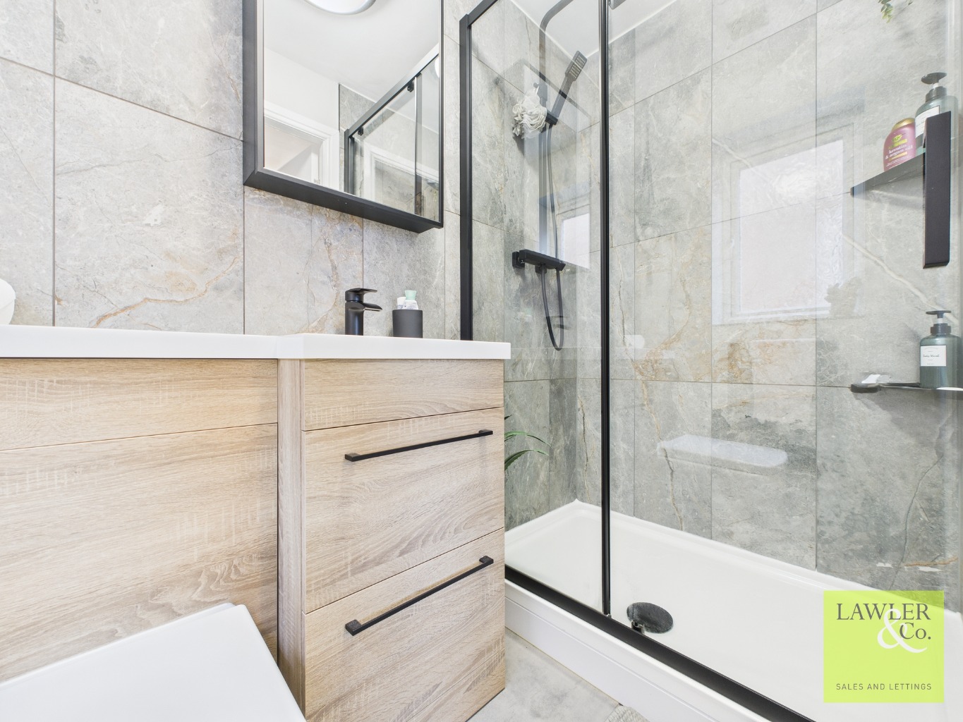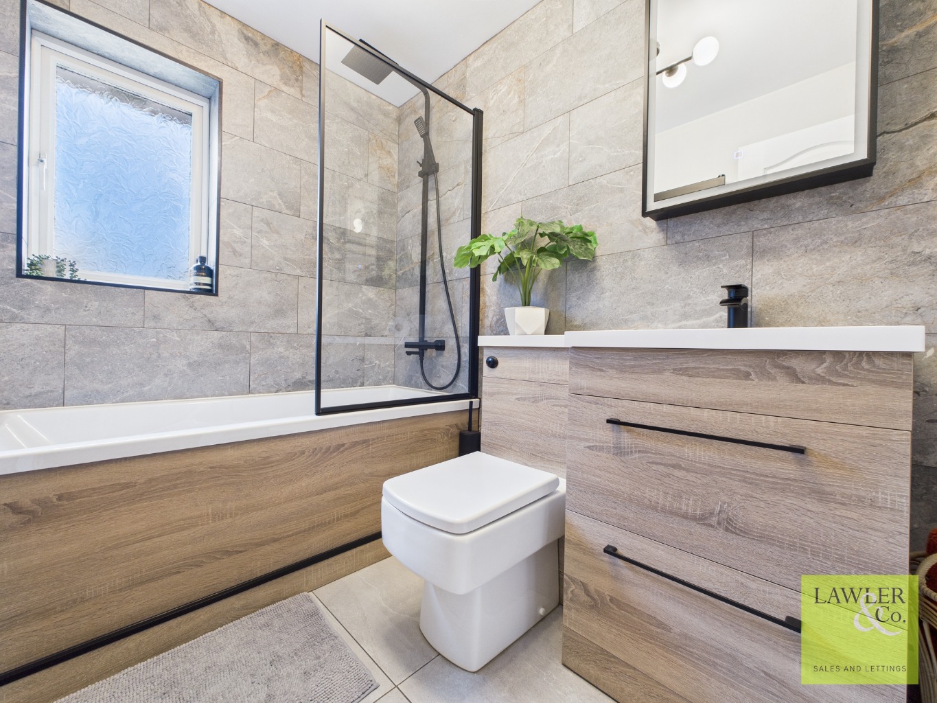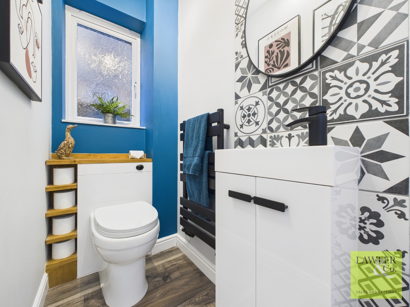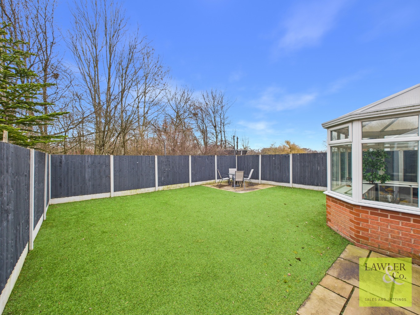 Outside is where this home truly shines. The rear garden has been thoughtfully designed with an Indian stone patio, low-maintenance artificial lawn, and secure fencing; offering exceptional privacy and practicality. It’s a rare, peaceful setting that feels wonderfully secluded yet remains close to everything you need.