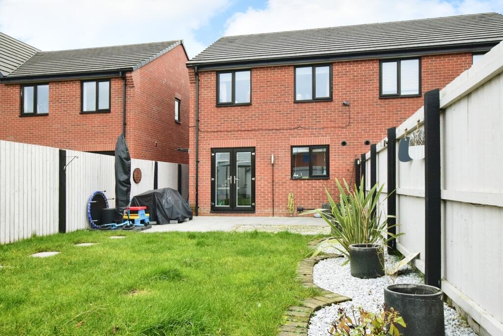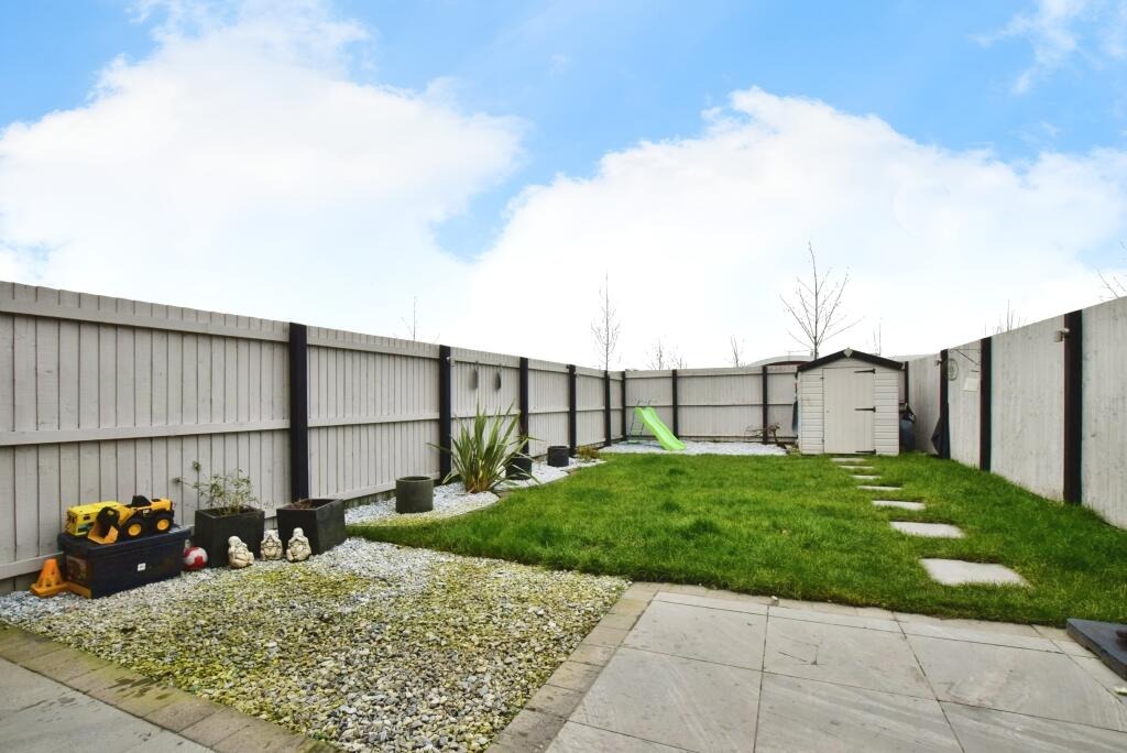 Externally, the property continues to impress with a generous westerly facing rear garden which allows for lovely sunlight through the late morning to evening, which features fitted downlights and an attractive Porcelain patio area that provides the perfect setting for outdoor dining, entertaining and socialising.