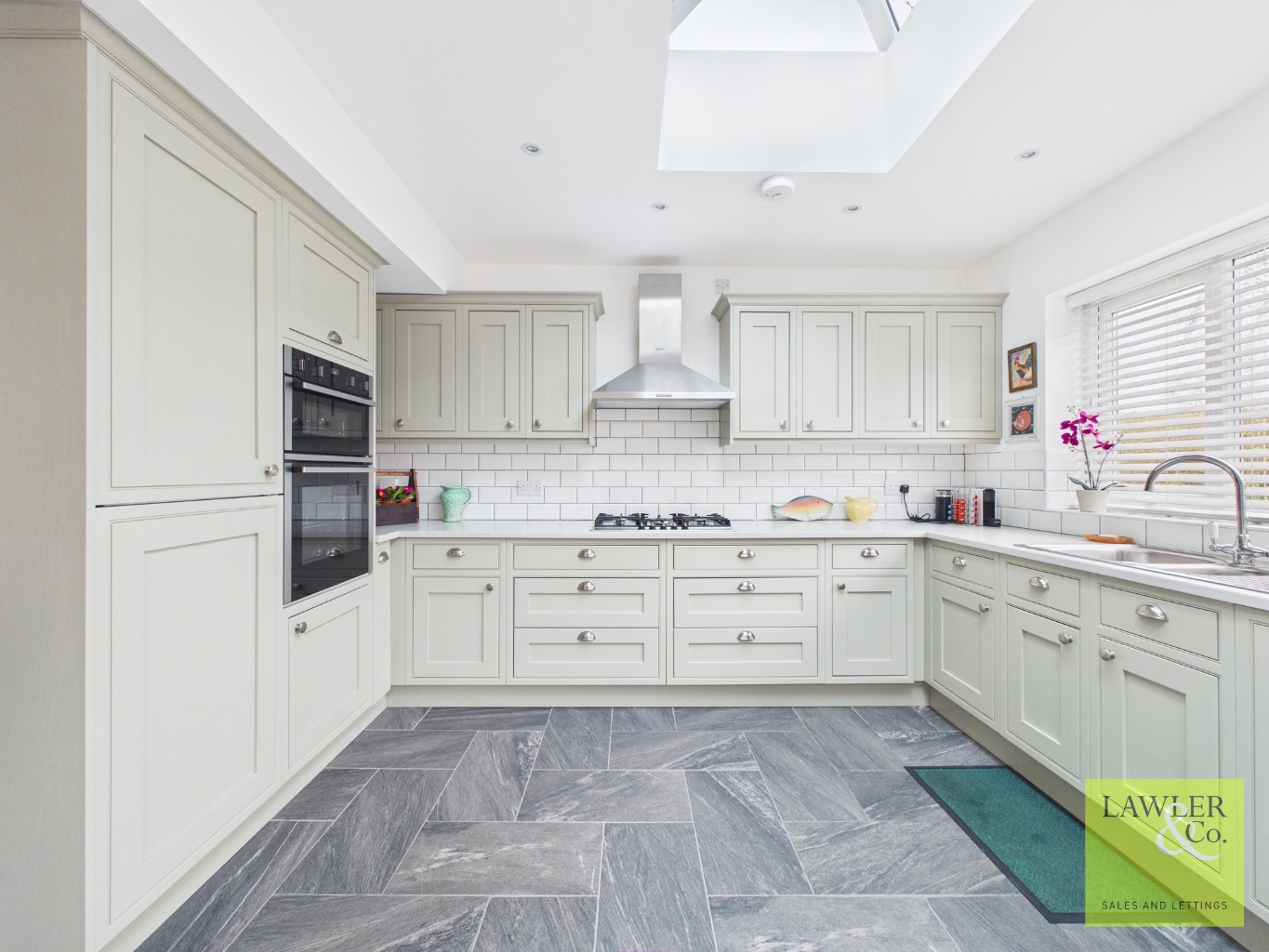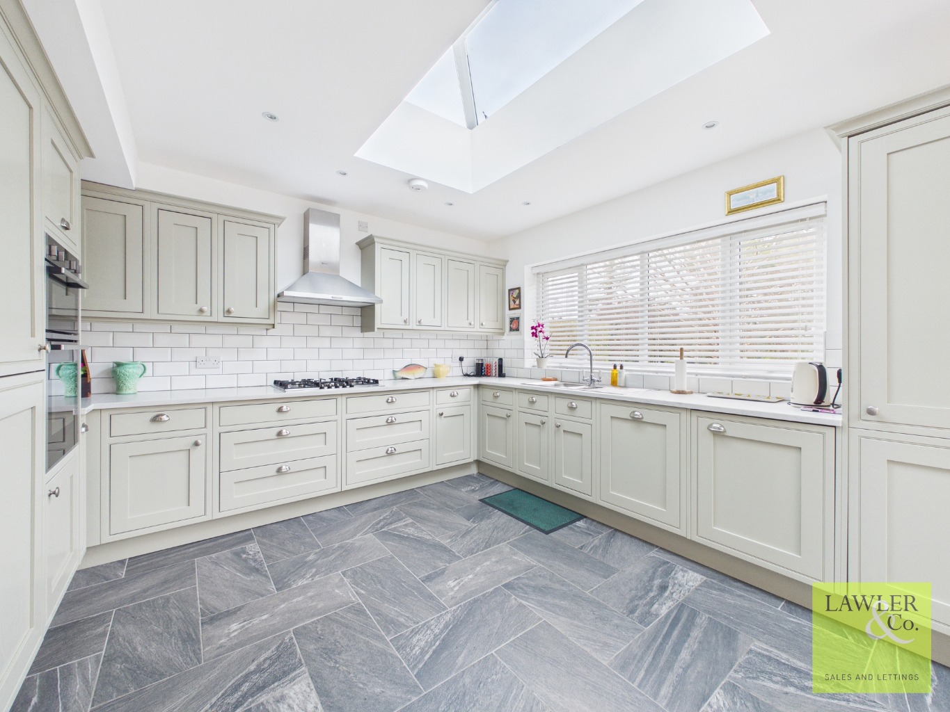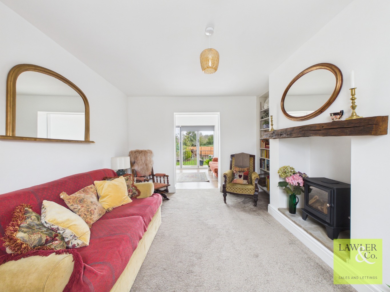 Upon entering the property through the porch, you are welcomed into the internal hallway with the staircase positioned ahead. From here, the first living room offers a warm and inviting space perfect for cosy evenings and relaxing nights in. Leading through from the hallway is the beautifully extended open plan living, kitchen and dining space – truly the heart of the home and ideal for both everyday family living and entertaining. The stylish kitchen is well appointed with a range of eye and base level units and high-quality integrated appliances, including a double oven and hob with extractor above. The kitchen further benefits from two atrium skylights, while bifold doors flood the room with natural light and provide peaceful views over the garden, creating a bright and airy atmosphere throughout the space. There is also a useful cupboard providing ample space for a washing machine, dryer and additional storage for laundry items and household essentials. From the kitchen, access is available towards the left side of the property, leading through to a wet room located on the right, complete with WC, shower and sink. The property also benefits from a secondary living space featuring bay windows that allow plenty of natural light to fill the room, creating an additional comfortable and versatile area within the home.