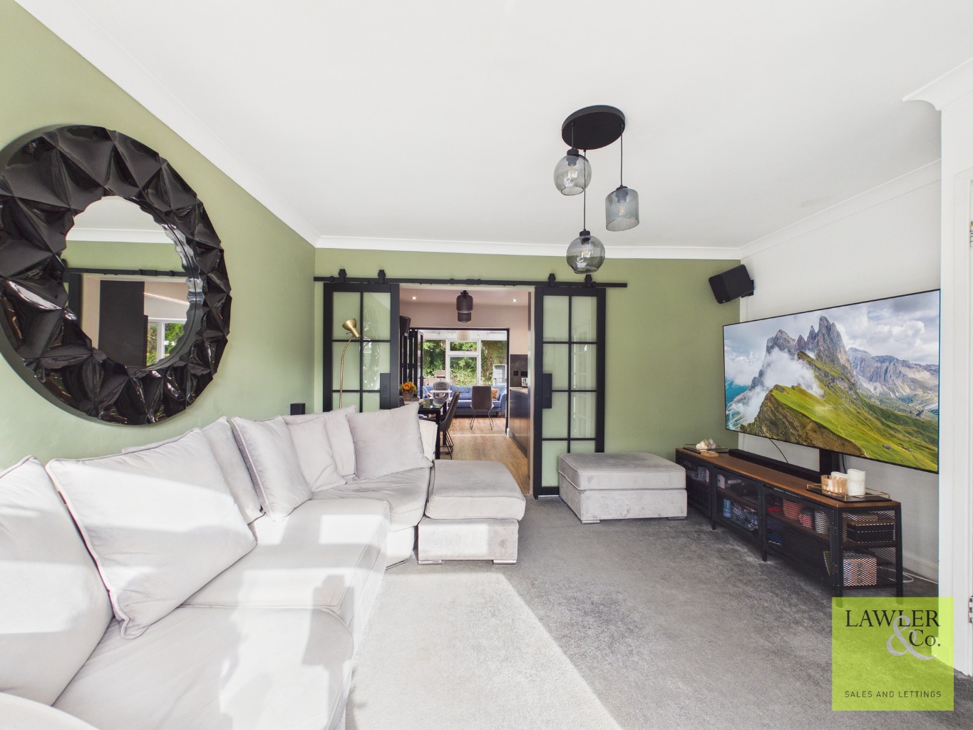 The property is entered through a convenient porch, which opens into a spacious hallway. From here, you step into the generously proportioned living room, a welcoming and comfortable area enhanced by decorative coving, adding subtle character. At the heart of the home lies the impressive kitchen/diner, thoughtfully designed to blend modern style with everyday practicality. It showcases sleek, matching wall and base units, beautifully complemented by premium Quartz work surfaces for a clean and contemporary finish. The space is fully equipped with a dual electric Samsung oven and microwave, a Hotpoint washing machine, a Hisense dishwasher, a Hoover wine cooler, and a Caple gas hob, ensuring both convenience and quality. There is ample room for a dining table, making it an ideal setting for family meals and social gatherings alike. Sliding doors open into the spacious rear conservatory, a light-filled and versatile additional living area featuring patio doors that lead directly out to the garden — perfect for enjoying seamless indoor and outdoor living.