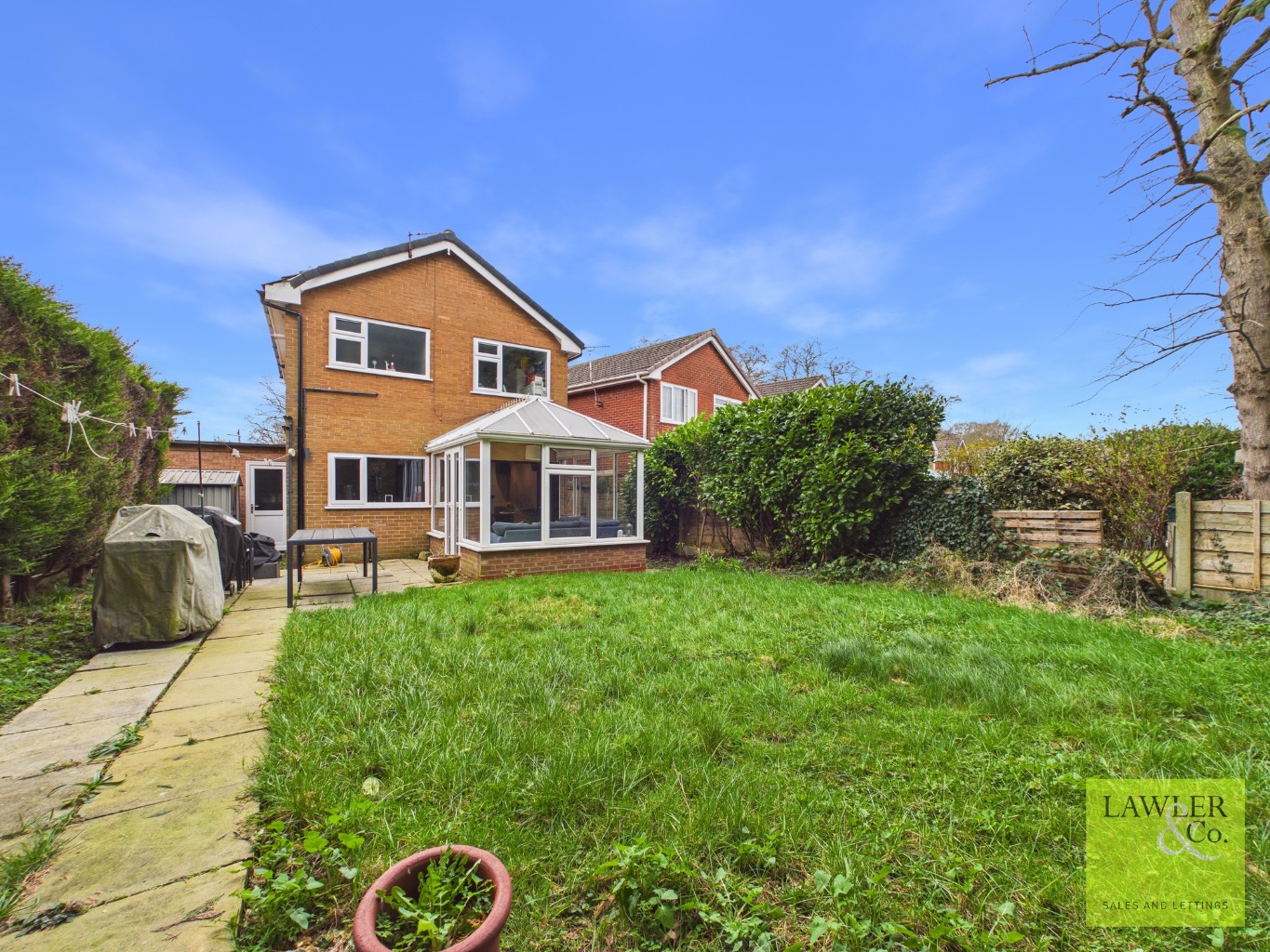 To the rear, the property boasts a private and enclosed garden, predominantly laid to lawn, offering a safe and enjoyable space for families and outdoor activities. A paved patio area provides the perfect setting for al fresco dining, entertaining guests, or simply relaxing during the warmer months. To the front, a generous driveway provides ample off-road parking for several vehicles and leads to a garage, delivering both convenience and additional storage options.