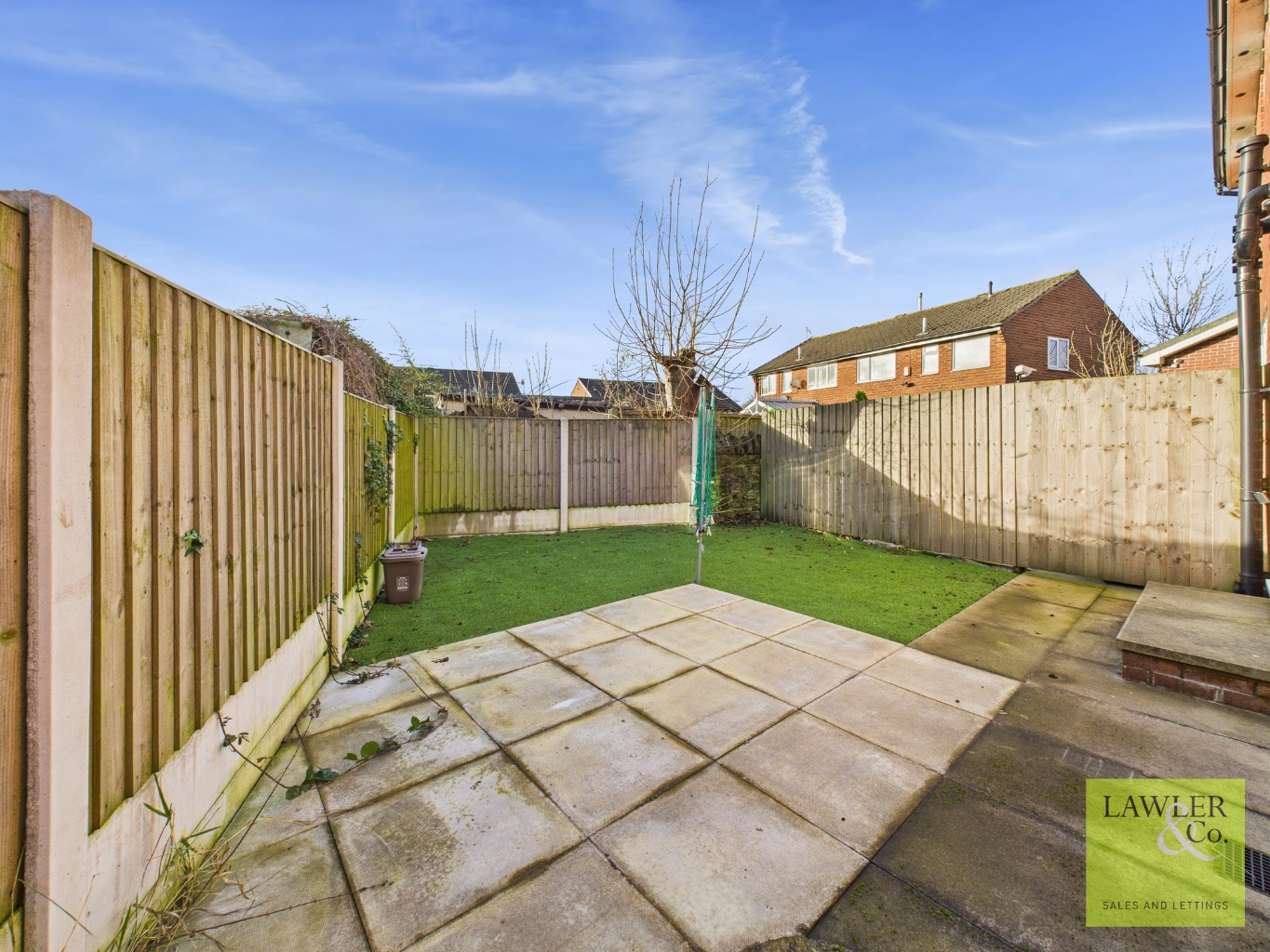 The rear garden is low-maintenance, with artificial lawn and a sunny patio, and off-road parking for two cars is available to the front.